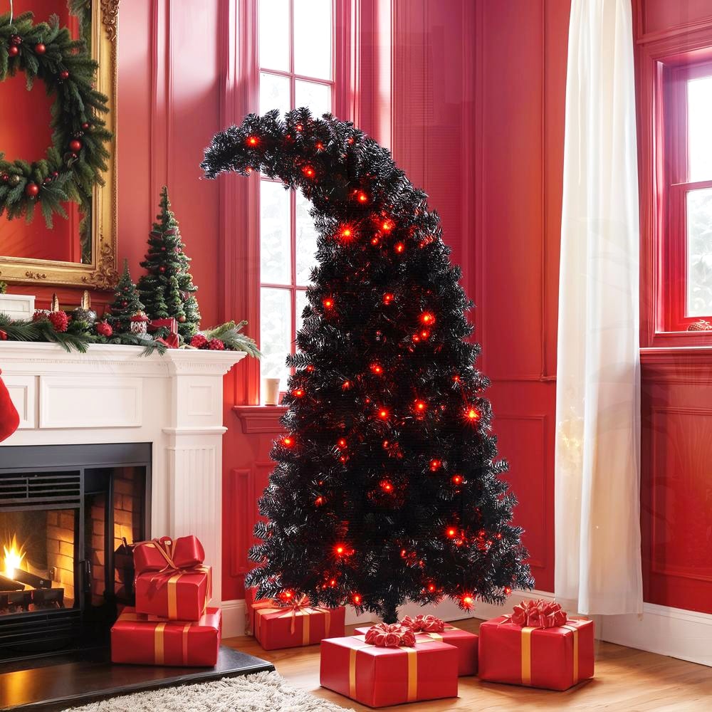 6FT Black Curved Christmas Tree with LED Lights and 900 Tips