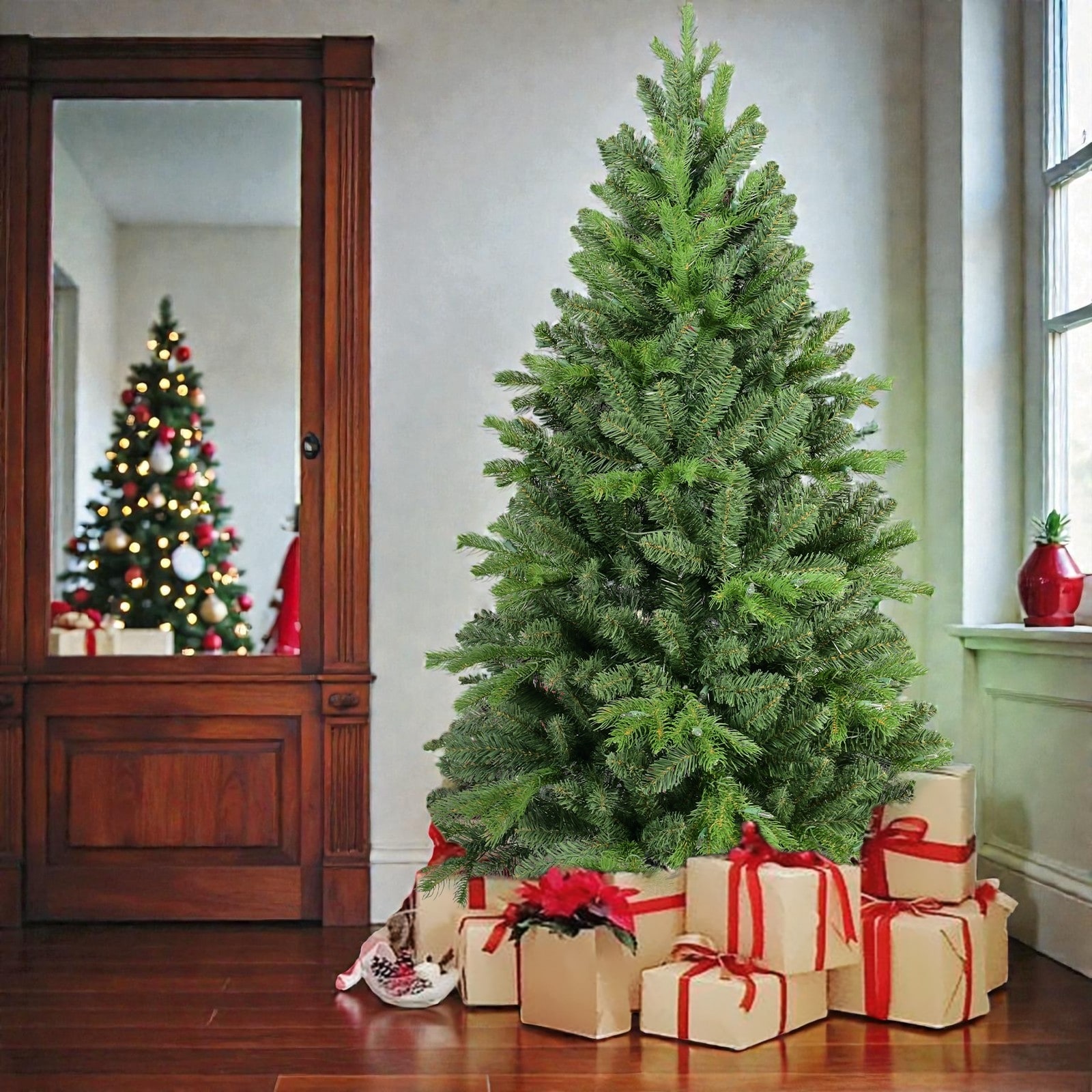 Artificial Christmas Tree with Mixed PE PVC Tips, Hinged Branches and Metal Stand, Full Holiday Tree for 5FT-9FT Sizes - Green