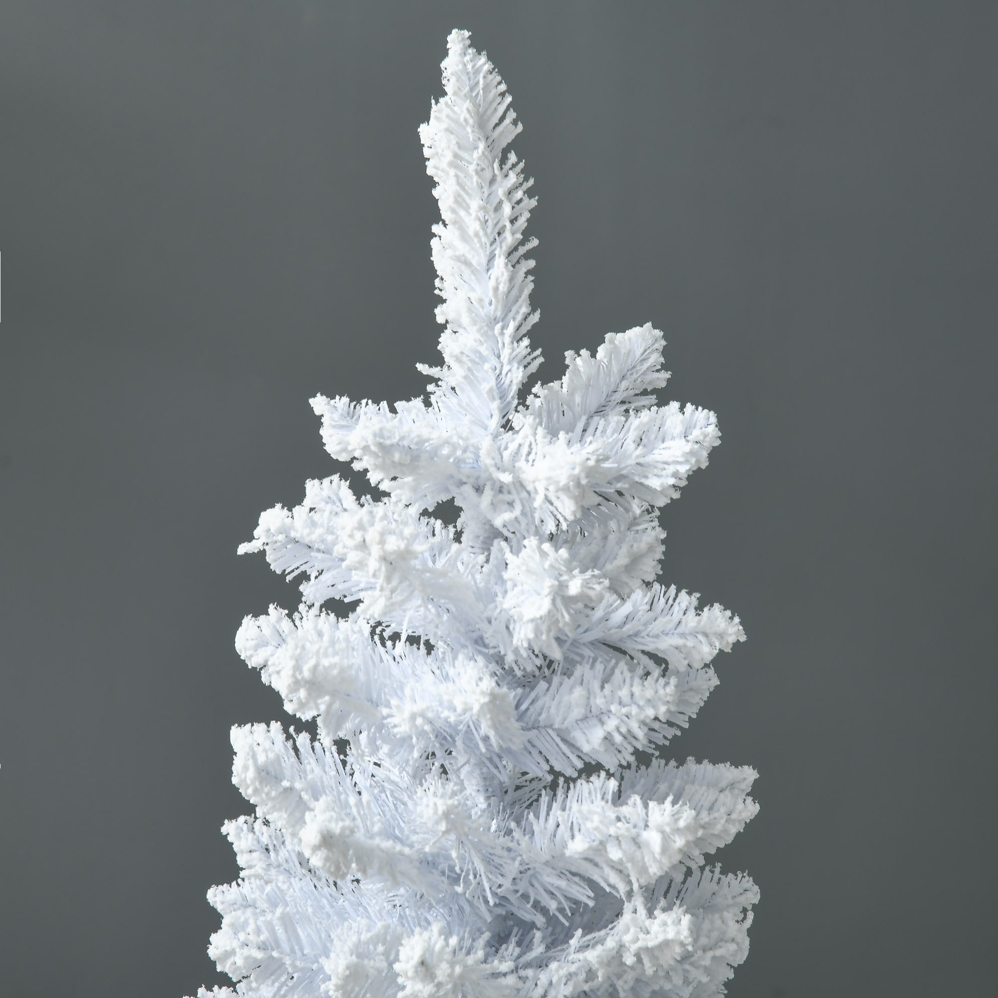 6ft Artificial Pencil Christmas Tree with 329 Snow Flocked Tips, Metal Base, Realistic Xmas Tree