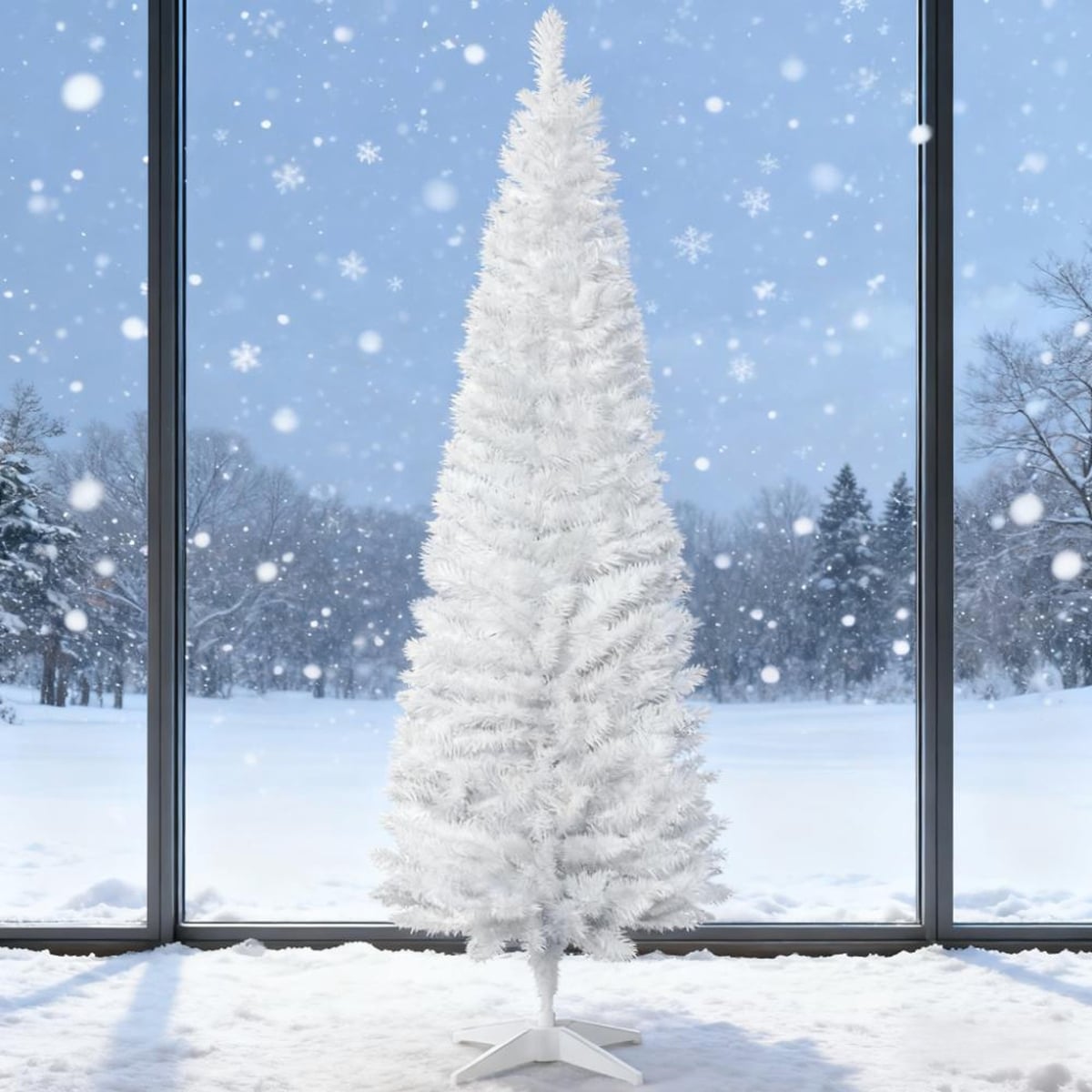 Snow Flocked Pencil Christmas Tree, Slim Artificial Christmas Tree with Sturdy Metal Stand