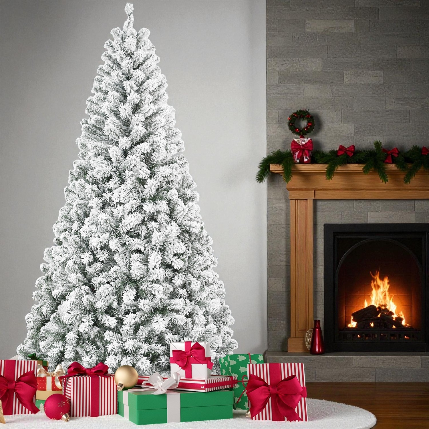 9' Unlit Snow Flocked Pine Artificial Christmas Tree with Realistic Branches and 1159 Tips, Green