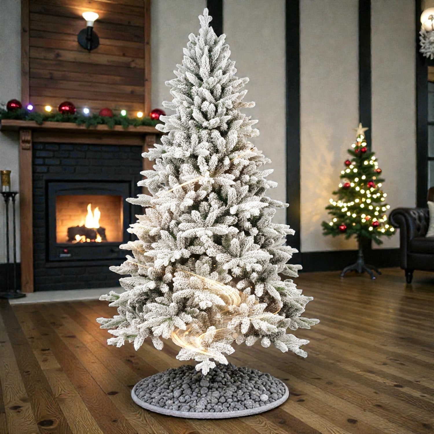 7.5ft Pre-Lit Snow-Dipped Artificial Christmas Tree with Realistic Branches, 350 LED Lights, Pine Cones, Red Berries and 1075 T