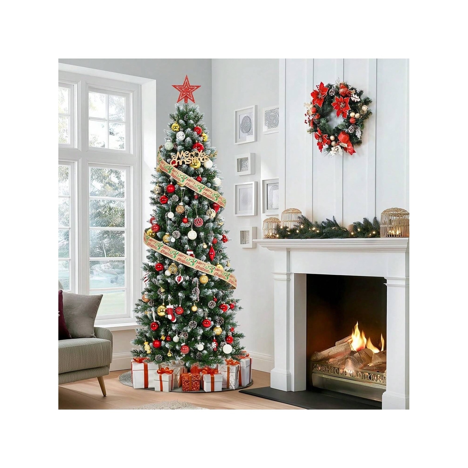 6FT Unlit Snow-Flocked Slim Artificial Christmas Tree with 394 Tips