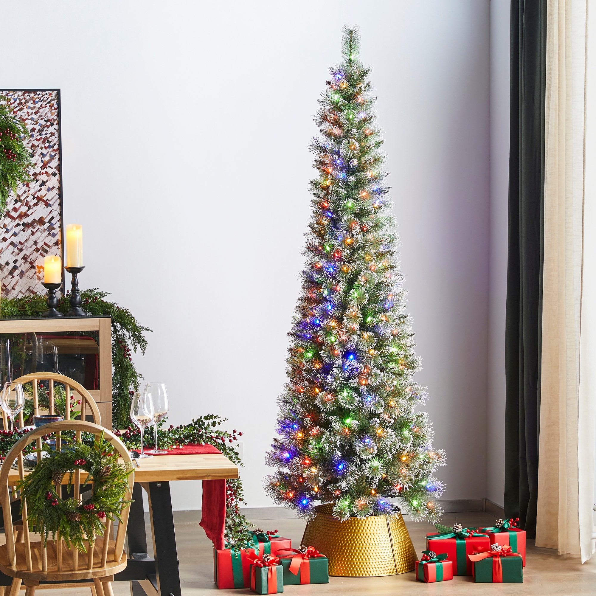 Glitzhome 7.5/9 FT Pre-Lit Frosted Cashmere Pencil Pine Artificial Christmas Tree with Clear Lights Remote Control