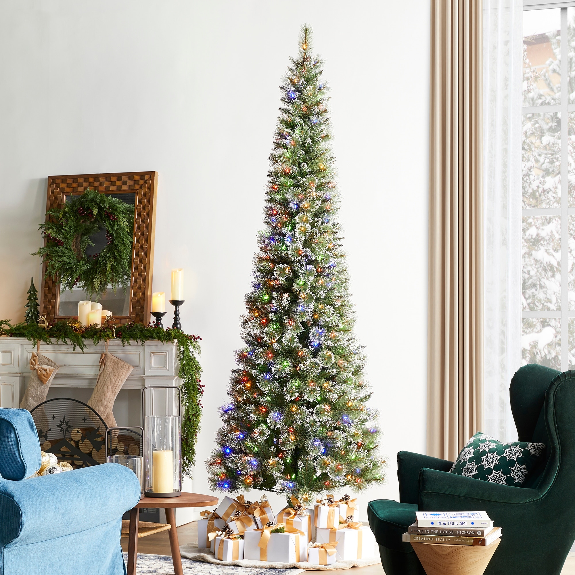 Glitzhome 7.5/9 FT Pre-Lit Frosted Cashmere Pencil Pine Artificial Christmas Tree with Clear Lights Remote Control