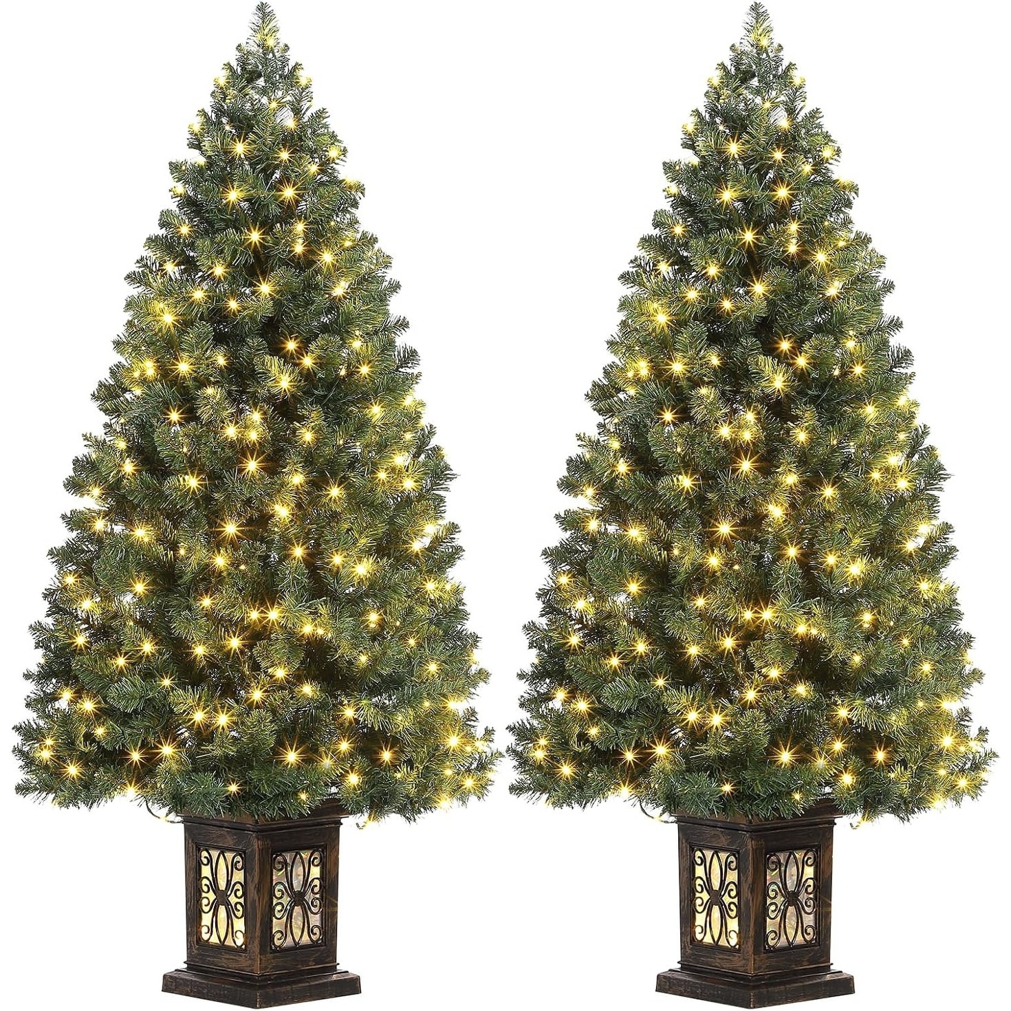 Winter Wonderland White Pre-Lit Christmas Trees with Warm Lights & Full Branch Tips, 6.5 ft & 7.5 ft Sizes