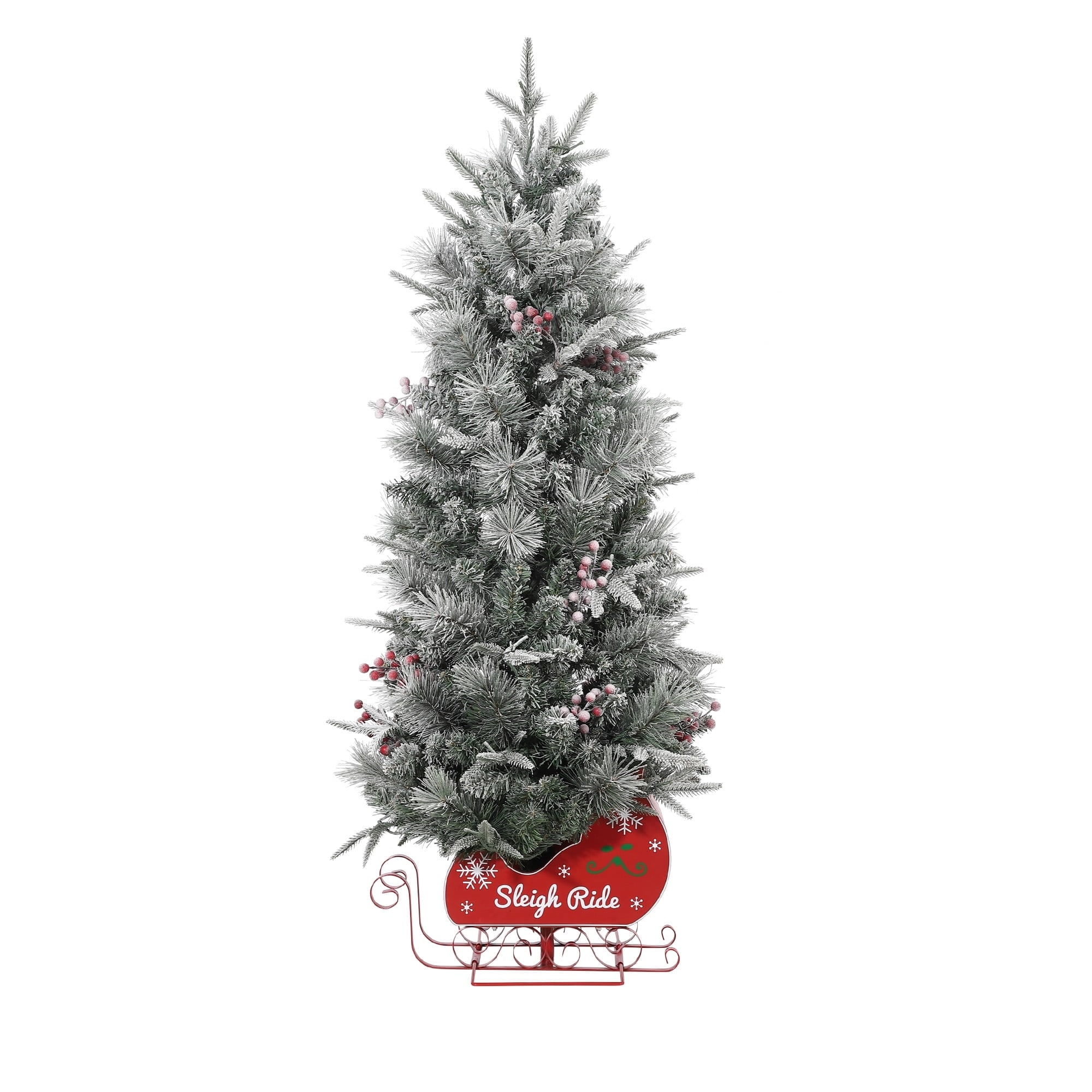 Flocked Christmas Tree with Red Berries & Pine Cones, 4-9FT