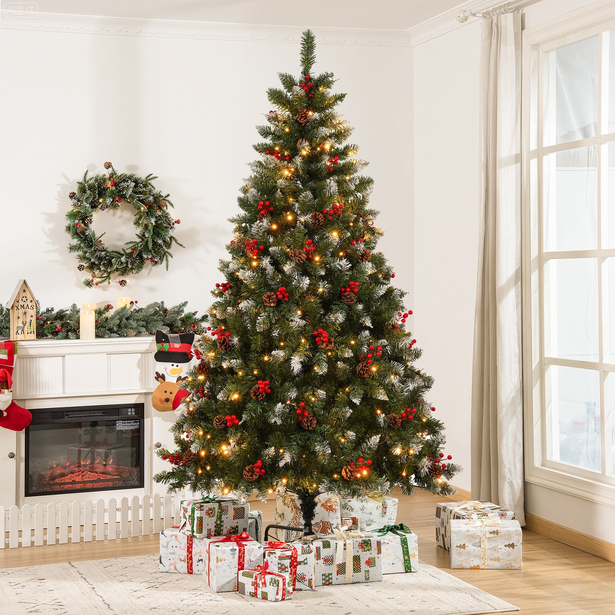 6ft Tall Prelit Artificial Christmas Tree Holiday Décor with 636 Snow Flocked Branches, 250 Warm Yellow Clear Lights, Auto Open