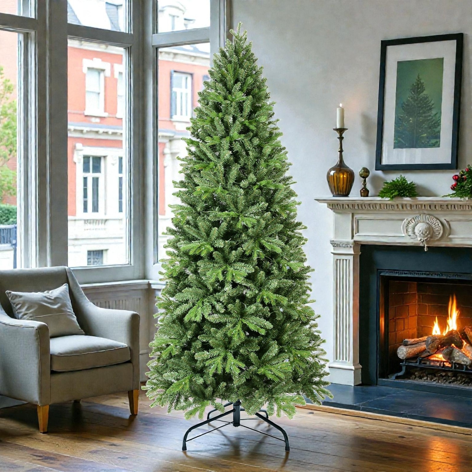 Pre-Lit Artificial Christmas Tree with PE PVC Branch Tips, Warm White LED Lights, Hinged Design and Metal Stand, 4FT-9FT - Green