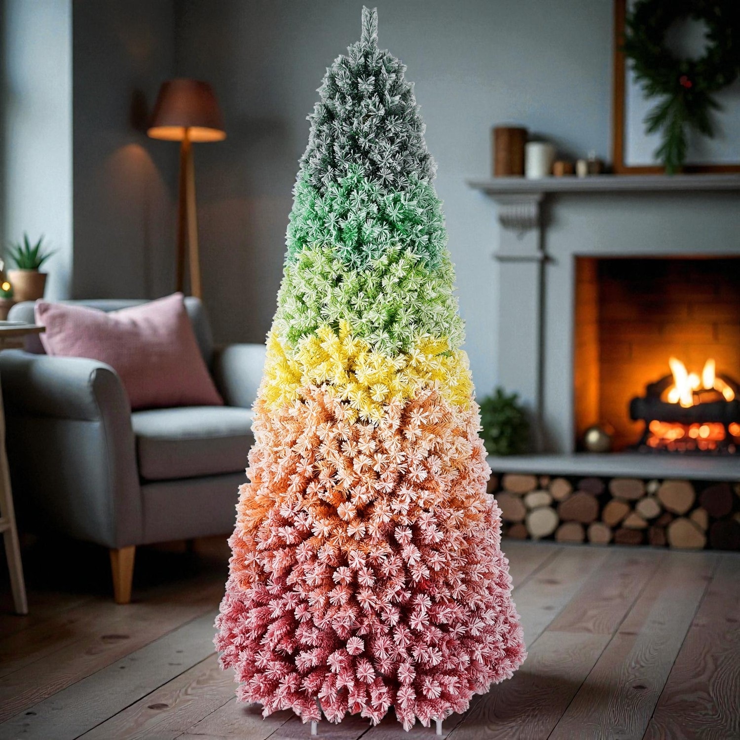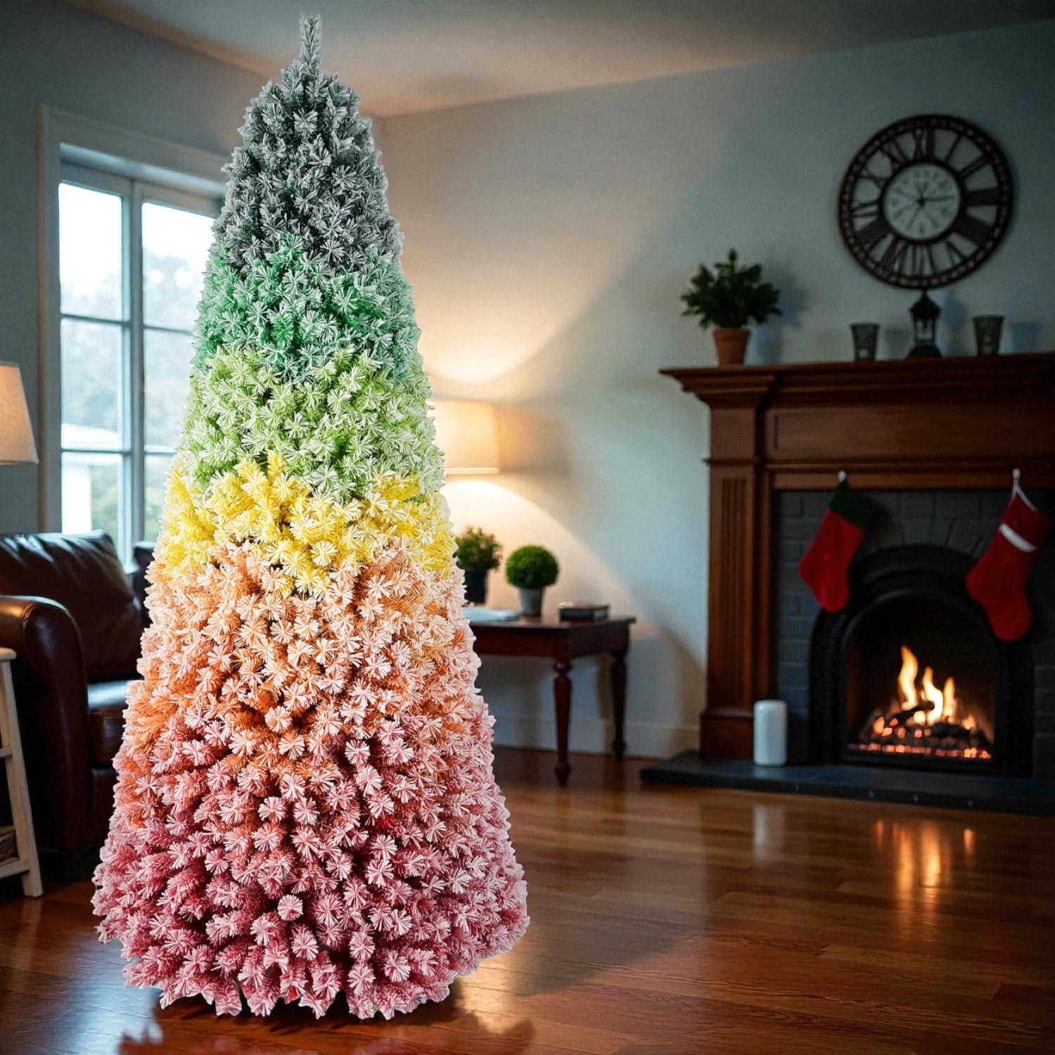 7.5ft Rainbow Gradient Flocked Artificial Christmas Tree with 1927 Tips, Full Lush Design & Sturdy Metal Stand - Colorful