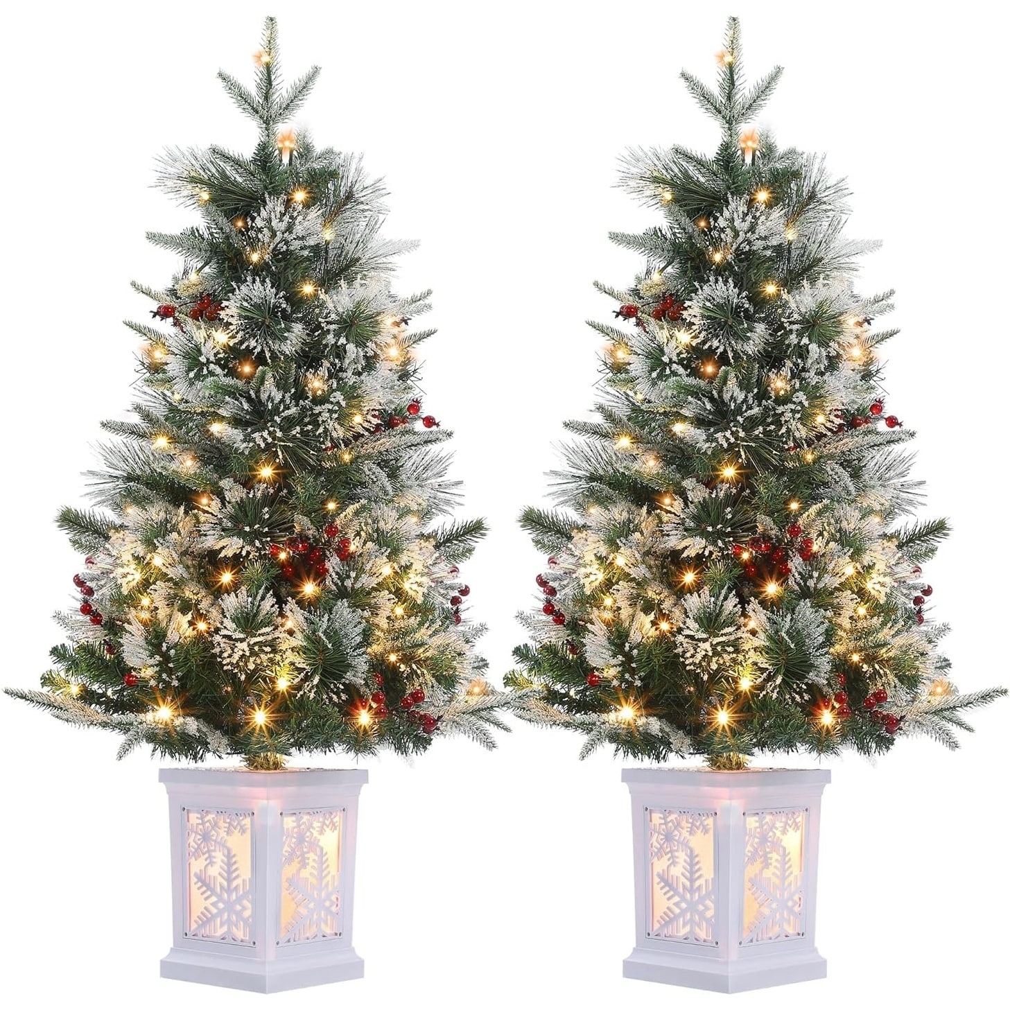 5' Winter Flocked Leaning Christmas Tree Pre-Lit with 150 LED Lights - 60