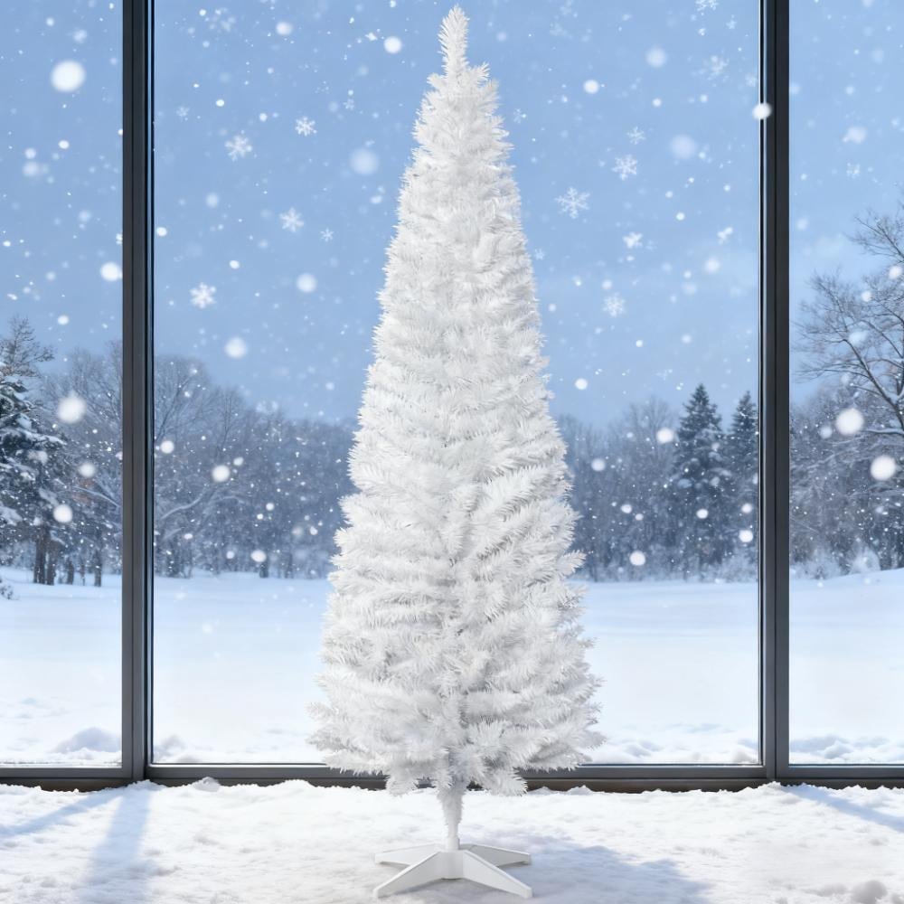 Slim Artificial Christmas Tree - Realistic Branches, Xmas Decor - White