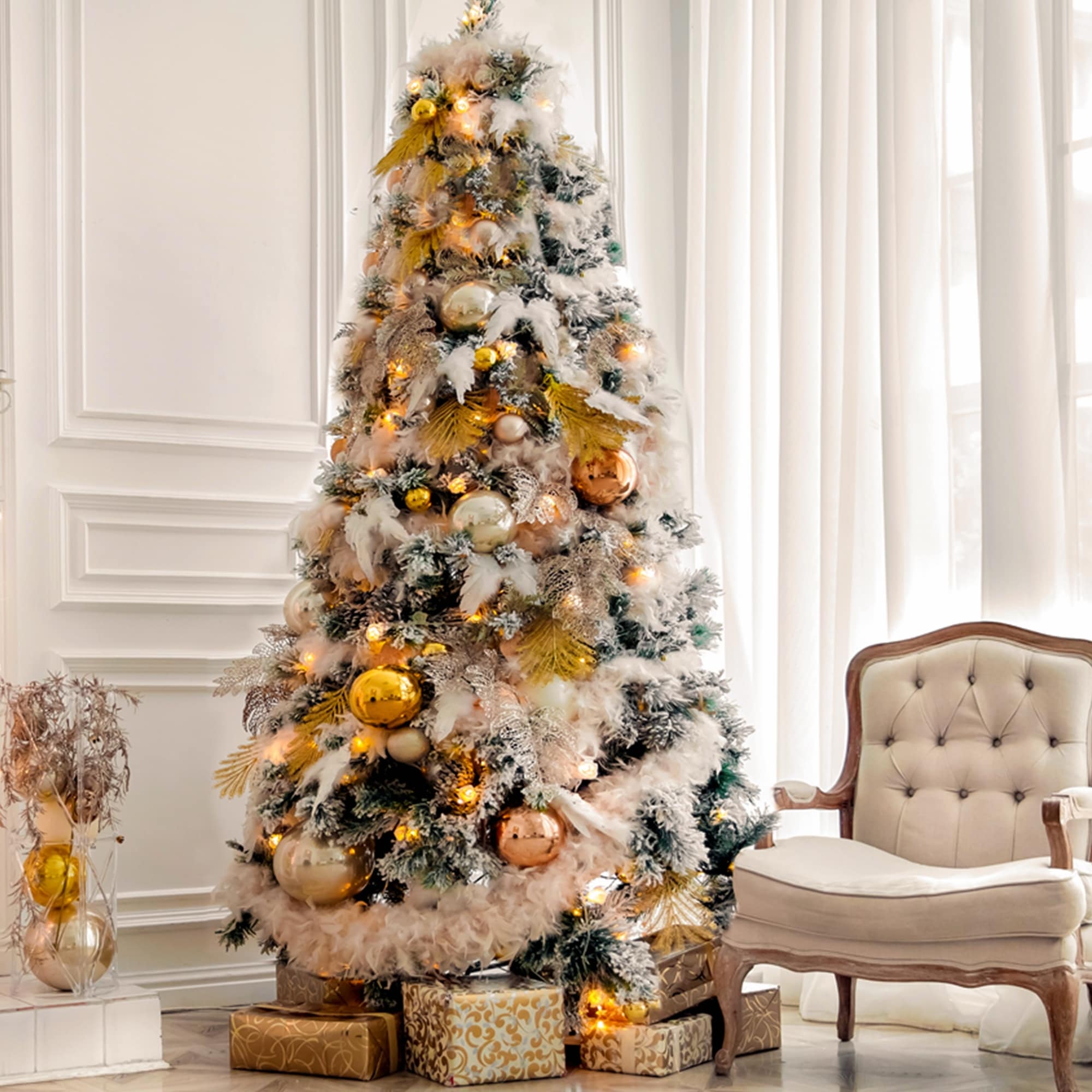 Snow Flocked Spruce Artificial Christmas Tree with Foldable Stand, Full Prelighted Xmas Tree Festive Ornamentation