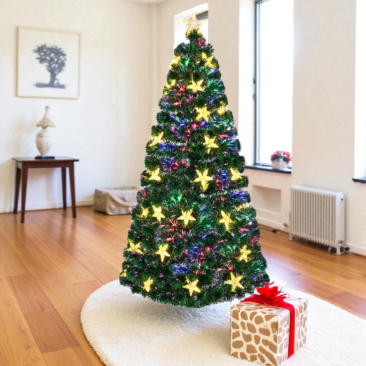 6FT/7FT Pre-Lit Fiber Optic Christmas Tree with Color Changing Lights, Stars and Metal Stand