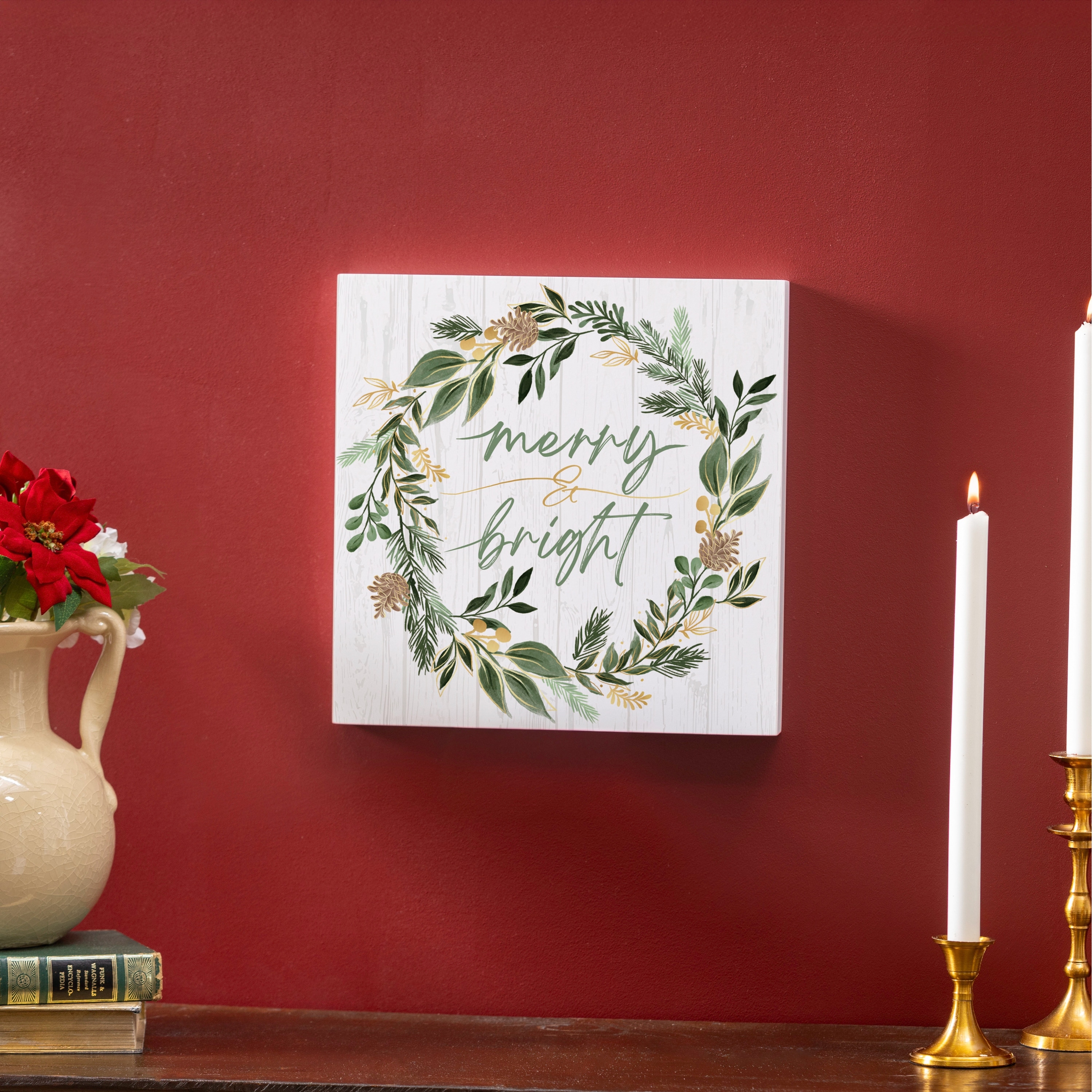 Shades of Green Wall Decor, "Merry Bright" - 12" x 12"