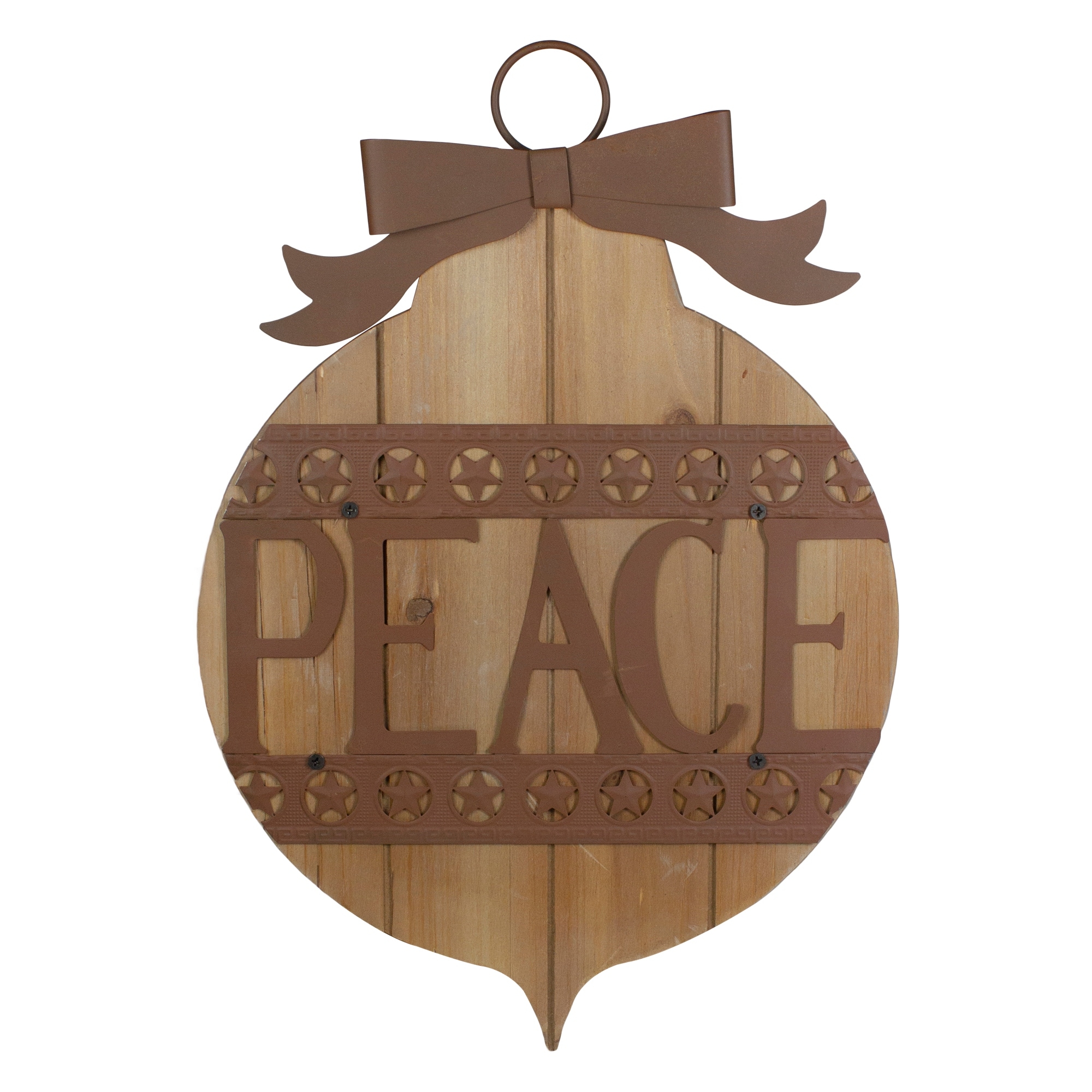 17" Rustic Brown PEACE Christmas Ornament Wall Sign