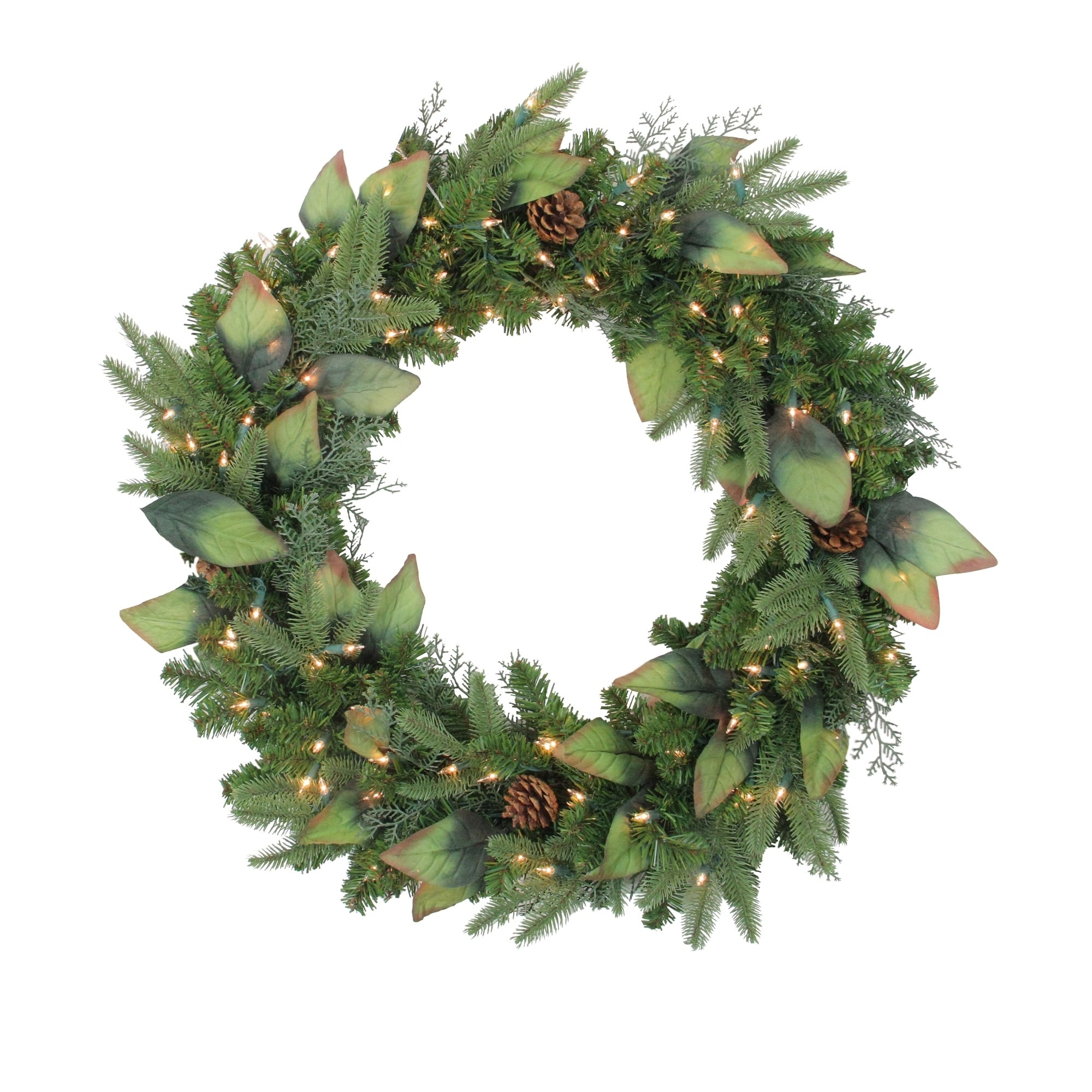Pre-Lit Mixed Winter Pine Artificial Christmas Wreath - 30 Inch Clear Lights
