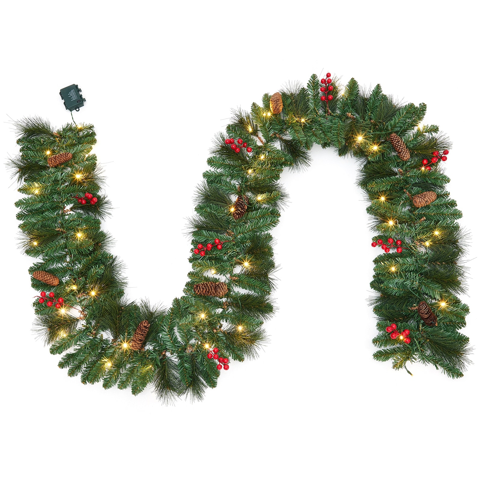 27' x 20" Pre-Lit Green Artificial Pine Christmas Garland Warm White LED Lights