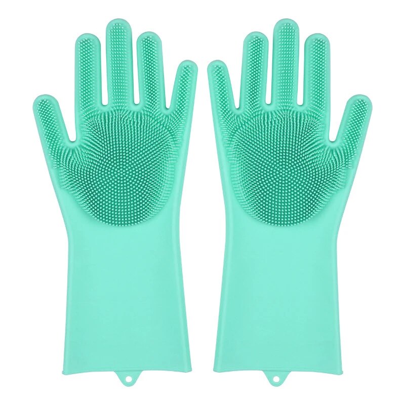 Magic Silicone Rubber Dishwashing Gloves: Household Sponge Scrubber For Kitchen Cleaning GREEN