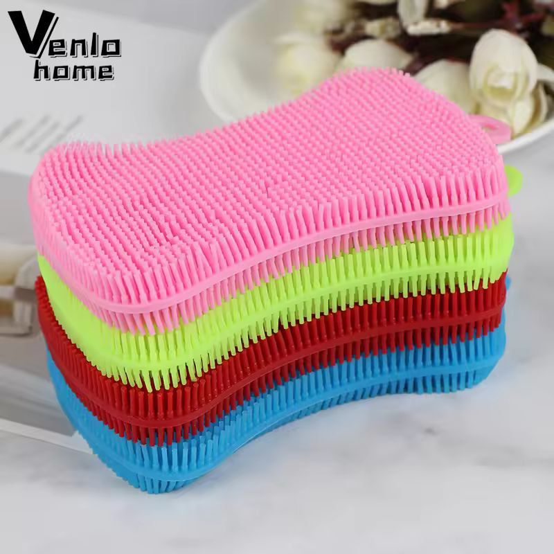 Silicone Kitchen Scrubber Brush Gentle & Effective Pot Pan Cleaner blue