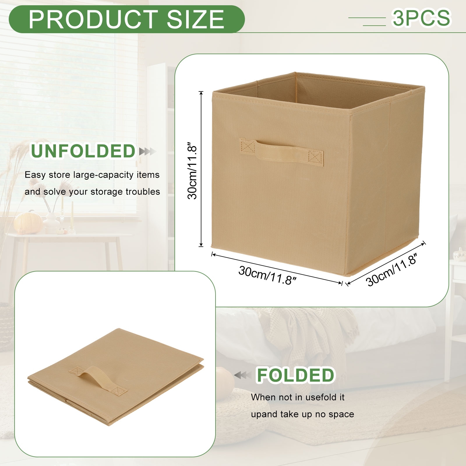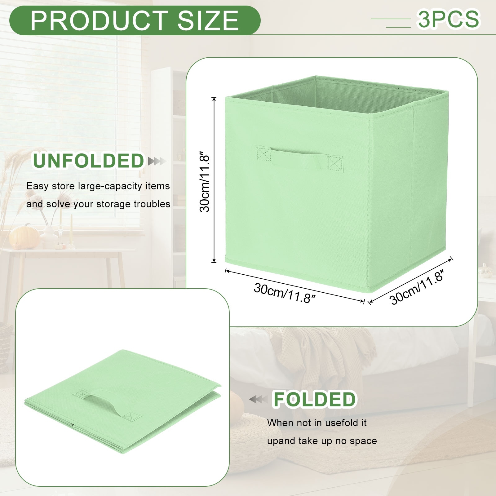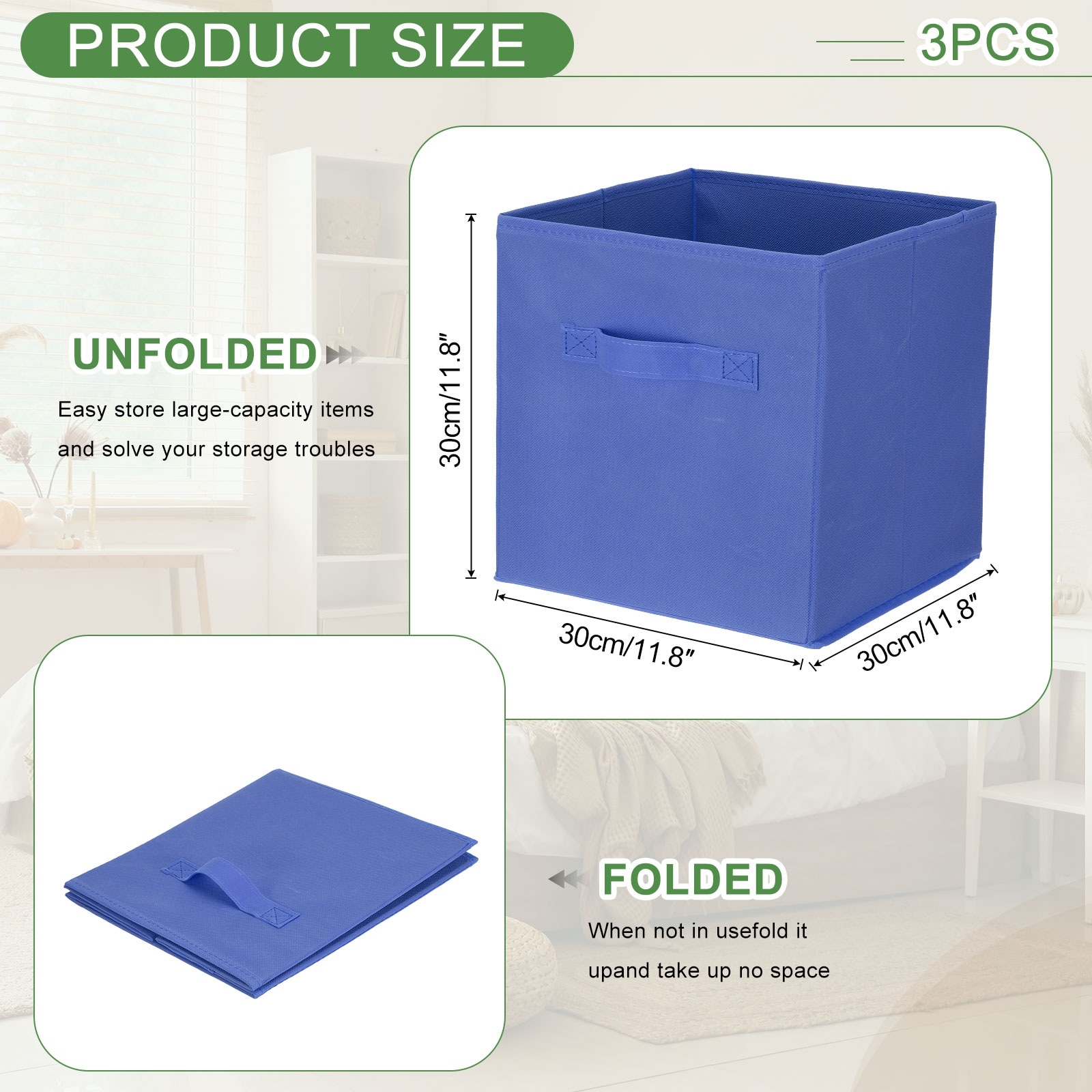 Fabric Storage Bins, Cube Storage Bin Foldable Storage Cube Organizer Bins with Handles - 11.8 x 11.8 x 11.8in