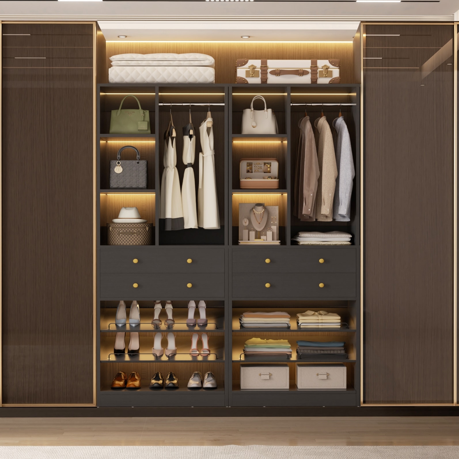 Rackcog 80"-120" W Closet System With 6 Wooden Drawers and 4 Hanging Rods,Sturdy Walk-in Closet Organizer with Storage Shelves