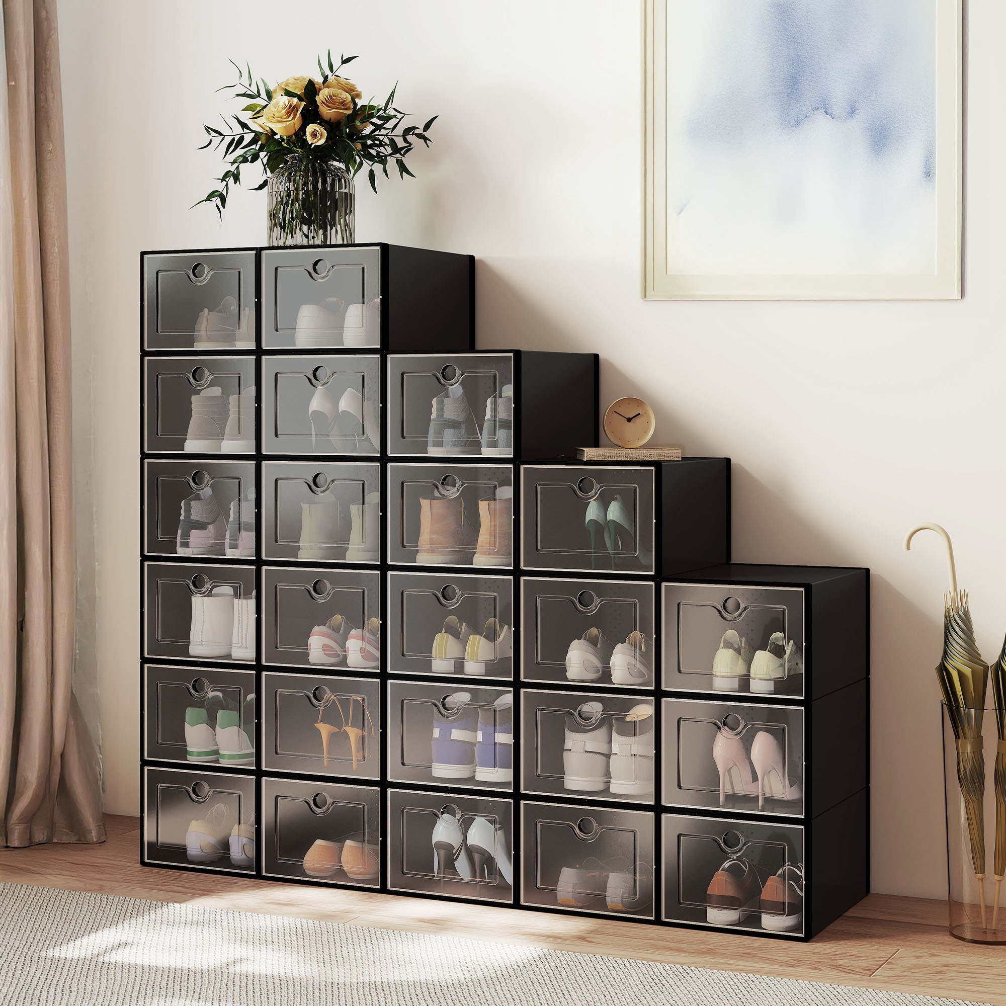 Moasis Shoe Organizer Box, 12/18/24 PCS Medium/ Large Shoe Storage Stackable Shoe Box Rack Containers Drawers