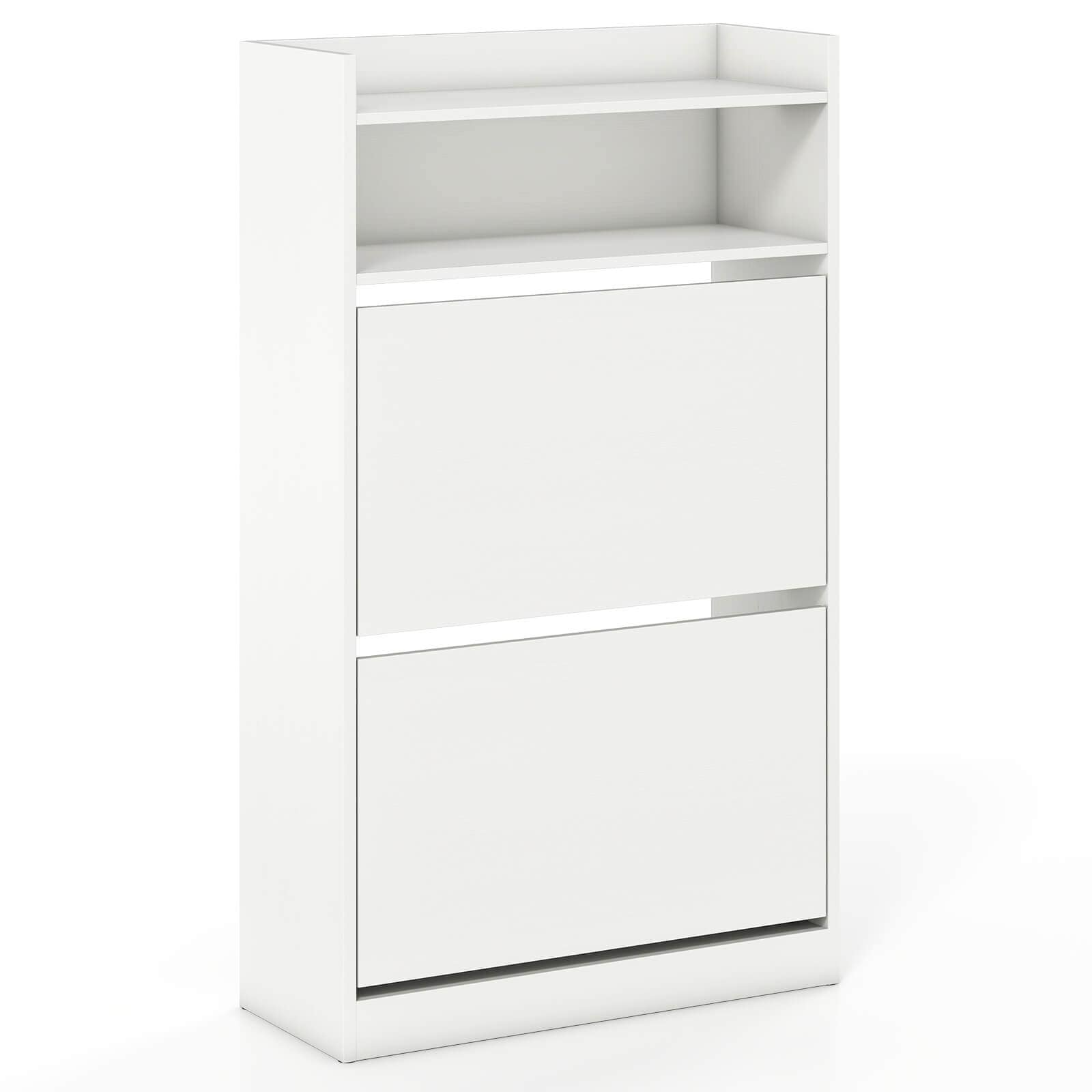 Freestanding Narrow Shoe Organizer Cabinet with 2 Open Shelves