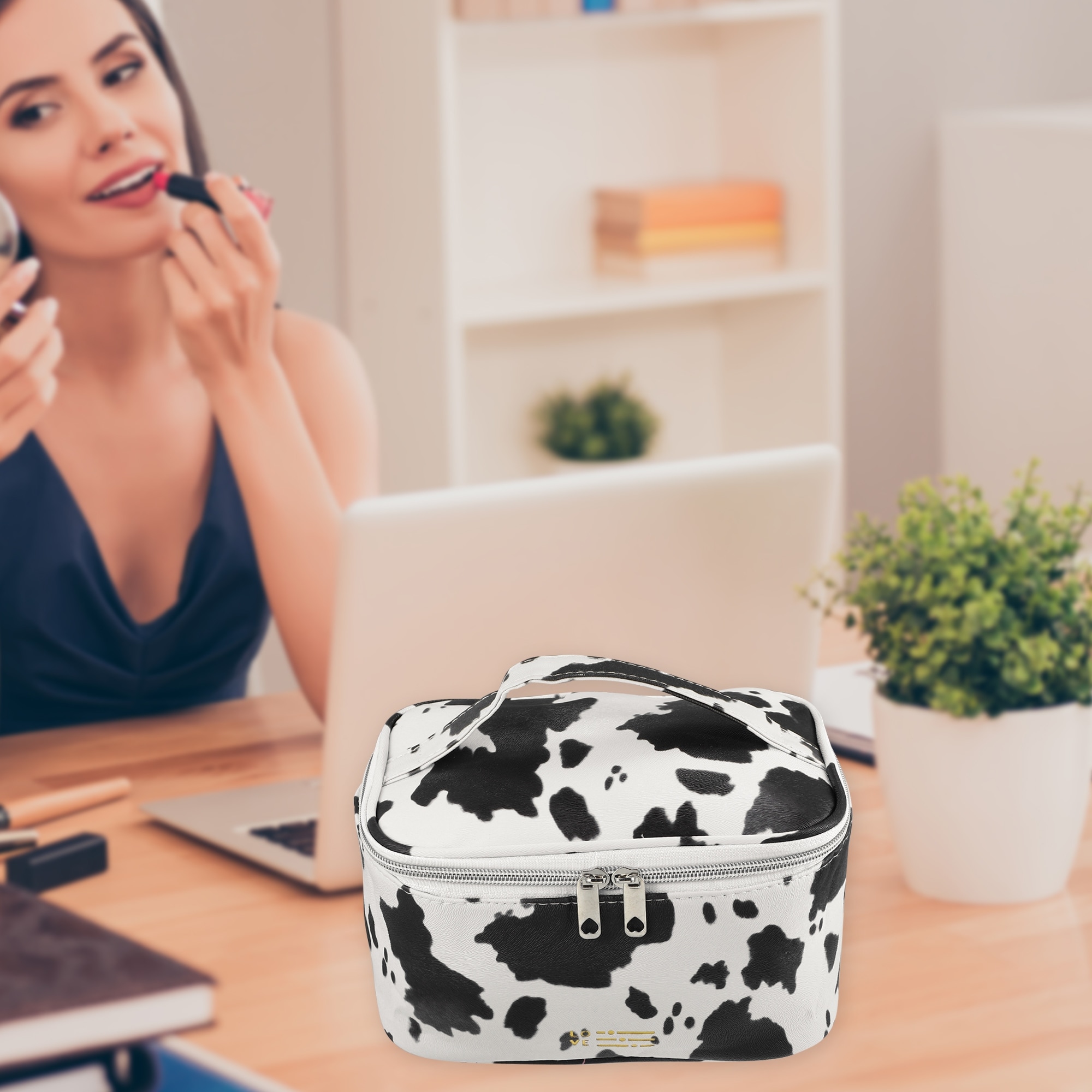 Travel Cosmetic Make Up Bag Organizer Bag for Women Faux Leather Black White - Black White