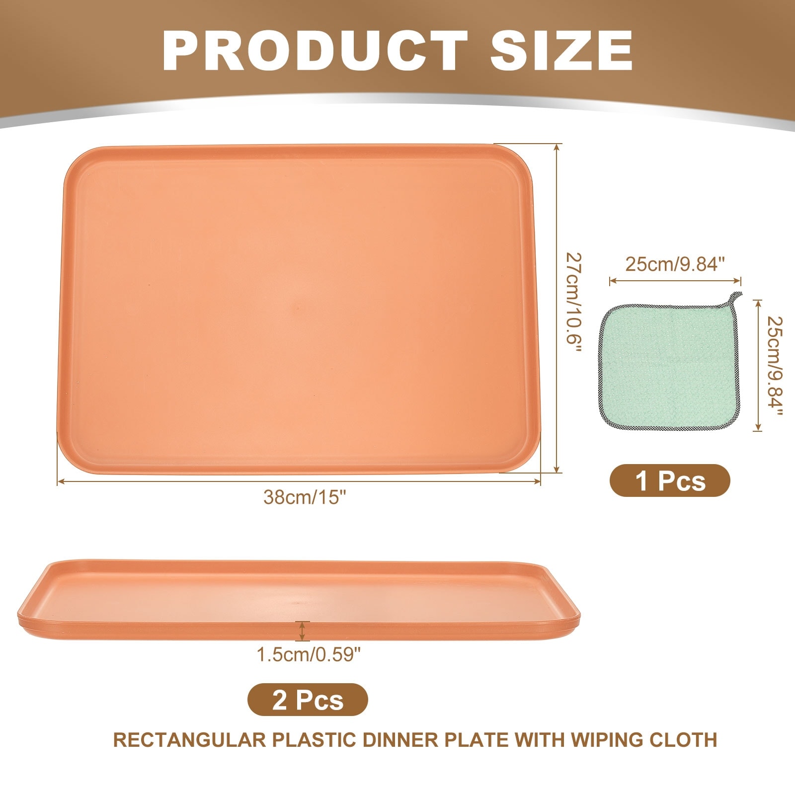 Plastic Tray, Pack Rectangular Plates Food Tray Wheat Plates Dishes Reusable Dessert Plate Trays with Cloth