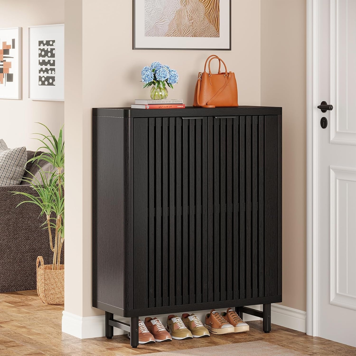 6-Tier Shoe Cabinet with Shutter Doors Adjustable Shelves Wooden Storage Cabinet for Entryway/Hallway/Closet/Living Room
