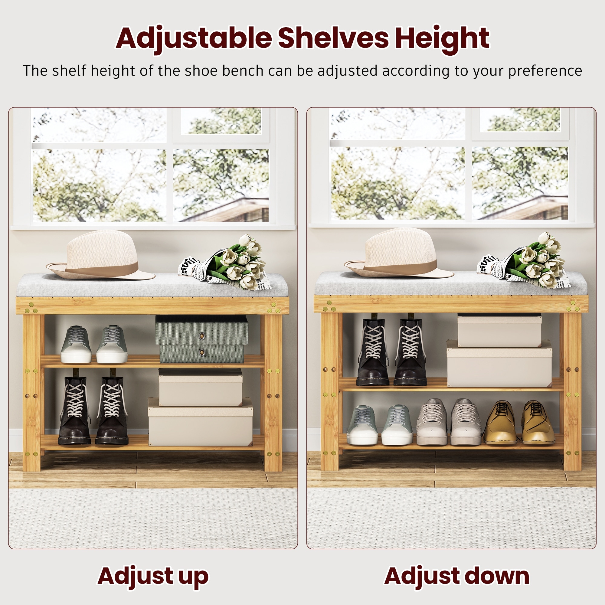 29.5"Shoe Storage Bench with 2 Door Cabinet, Entryway Bench with Shoe Storage, Adjustable Shelves, Shoe Rack Bench