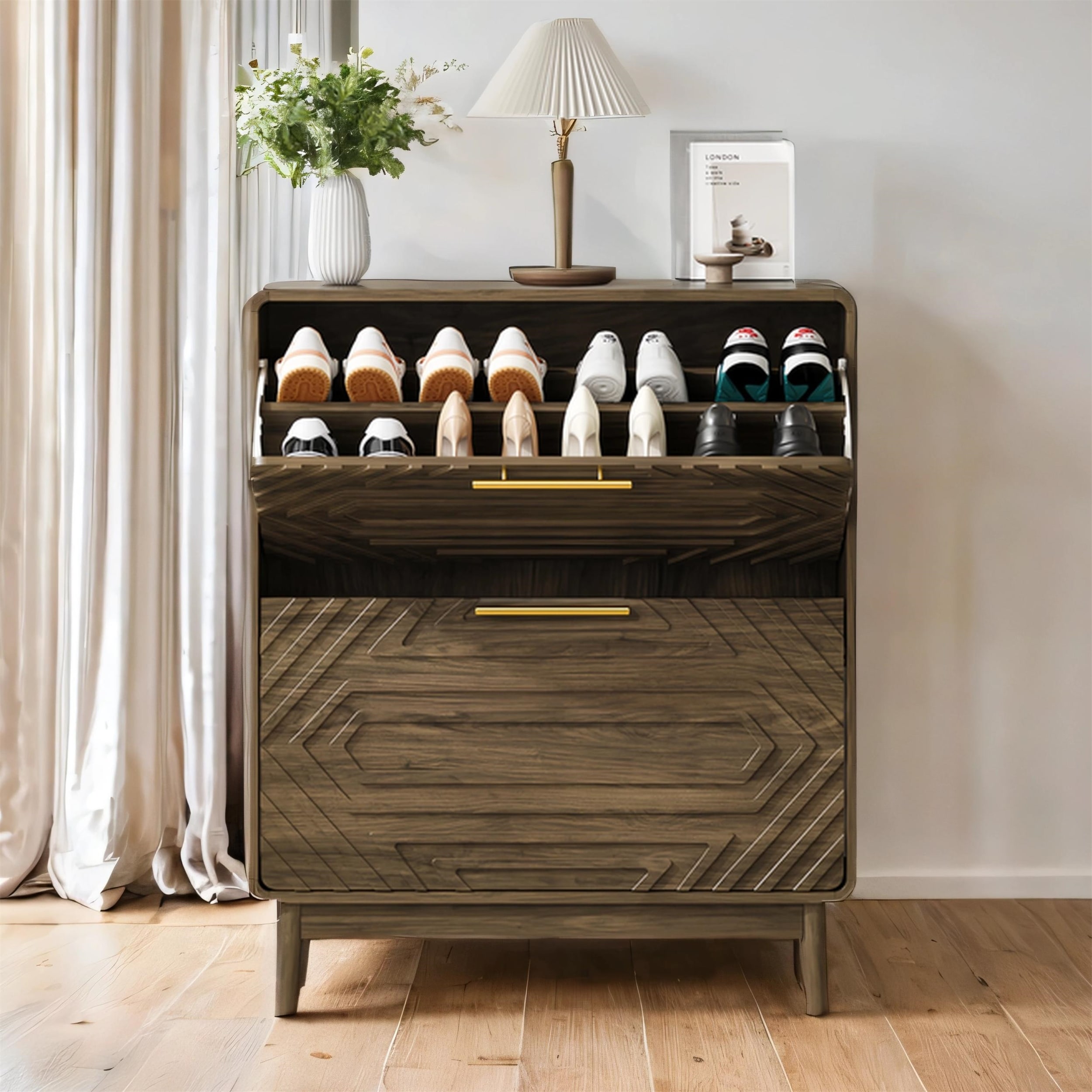 Shoe Cabinet with Flip Drawers, Adjustable Storage, Open Bottom Shelf