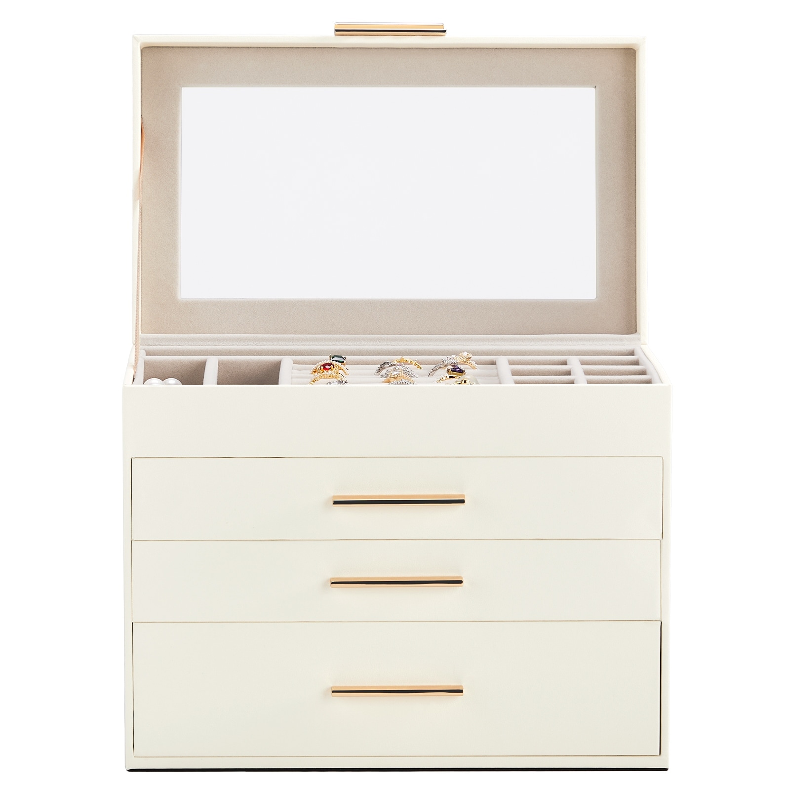 White-Pink Wood Jewelry Box with Velvet Lining and Clear Acrylic Top - 9.9” W x 6” D x 8.5” H