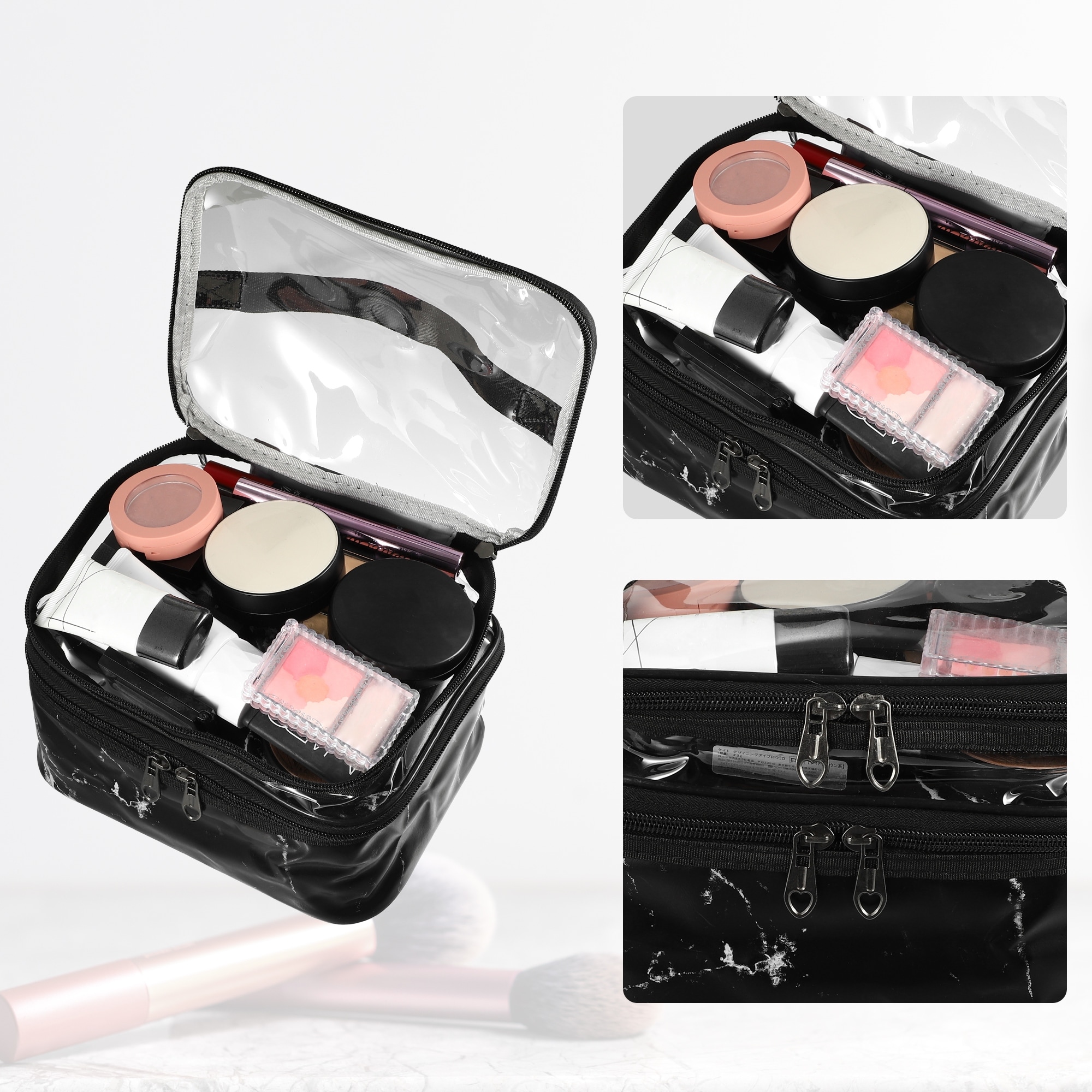 Double Layer Makeup Bag Cosmetic Bags Make up Organizer Bag Marble Pattern