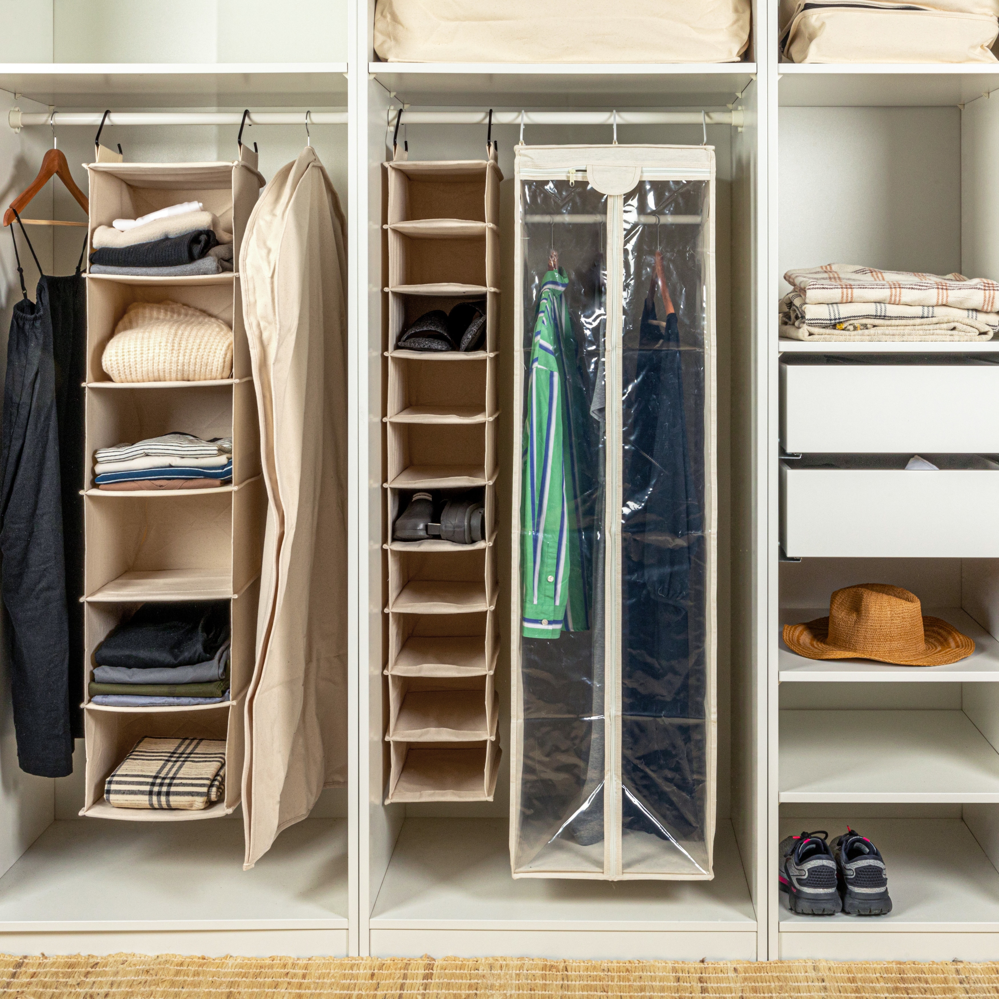 24.5'' W Freestanding Closet System with Wood Drawer and 5 Open Storage Shelves and Hanging Rods,