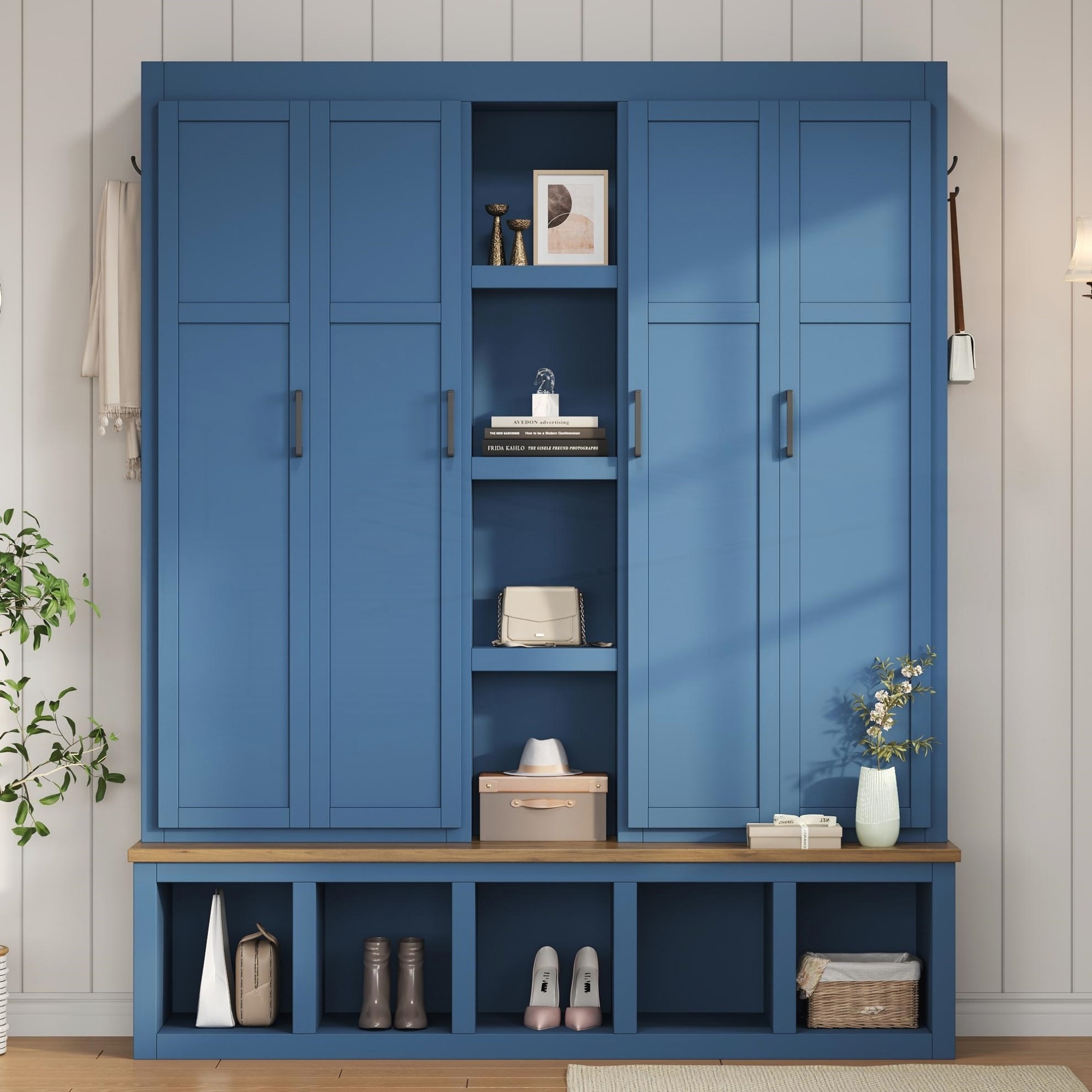 Compact Hall Tree with Bench, Coat Rack, Cubbies & Top Shelf - Ideal for Entryways and Mudrooms