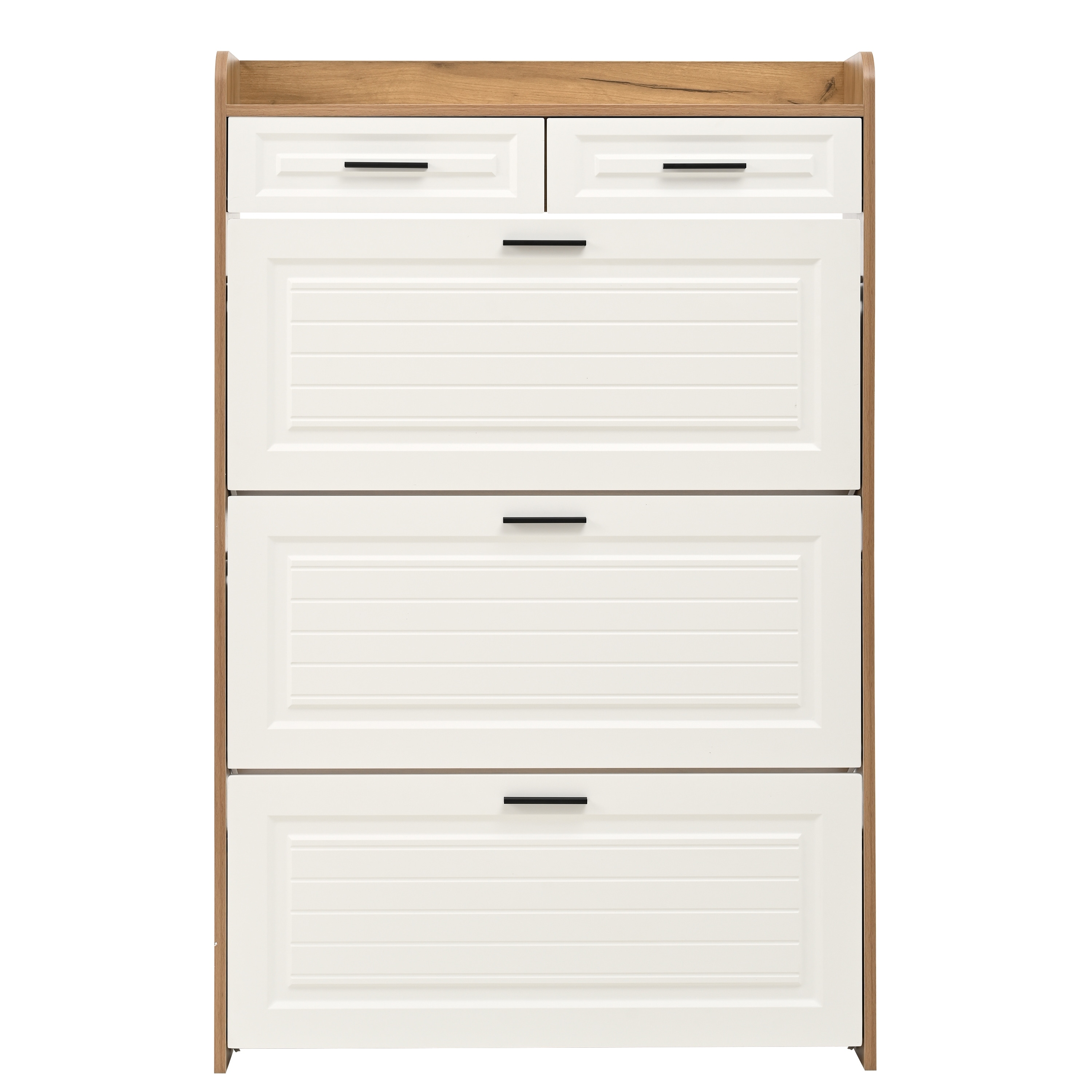 Large Storage Shoe Cabinet With Two Drawers & Three-Fold Doors.