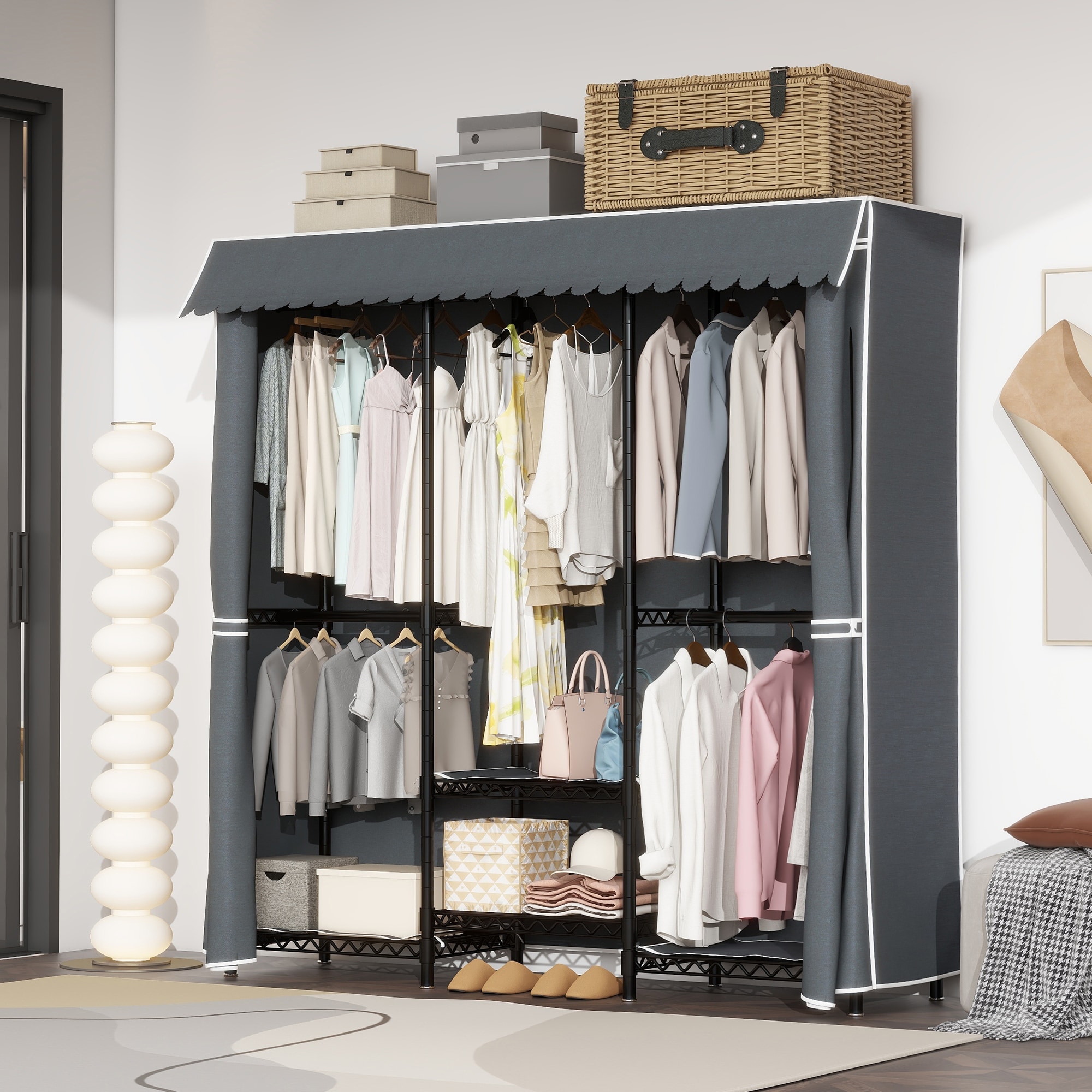 Garment Rack Clothes Rack for Hanging Clothes,Clothing Rack with Cover Freestanding Closet Organizer with Shelves & hanging Rods