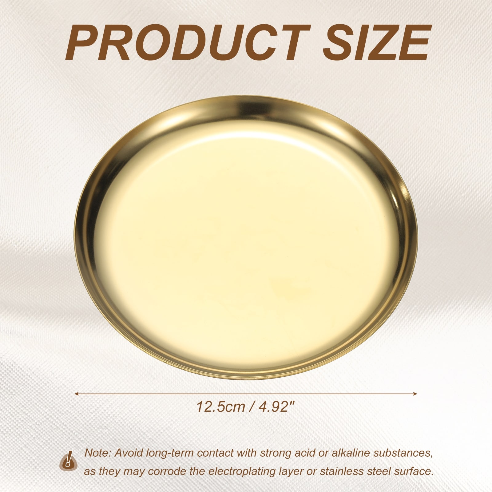 Round Serving Trays, Stainless Steel Decorative Jewelry Dish, Small Vanity Tray for Bathroom Aromatherapy Candle Drink Plate,