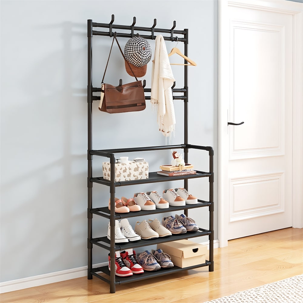 Multi-functional Storage Rack,8 Double Hooks,Clothes Hanger &Shoe Rack