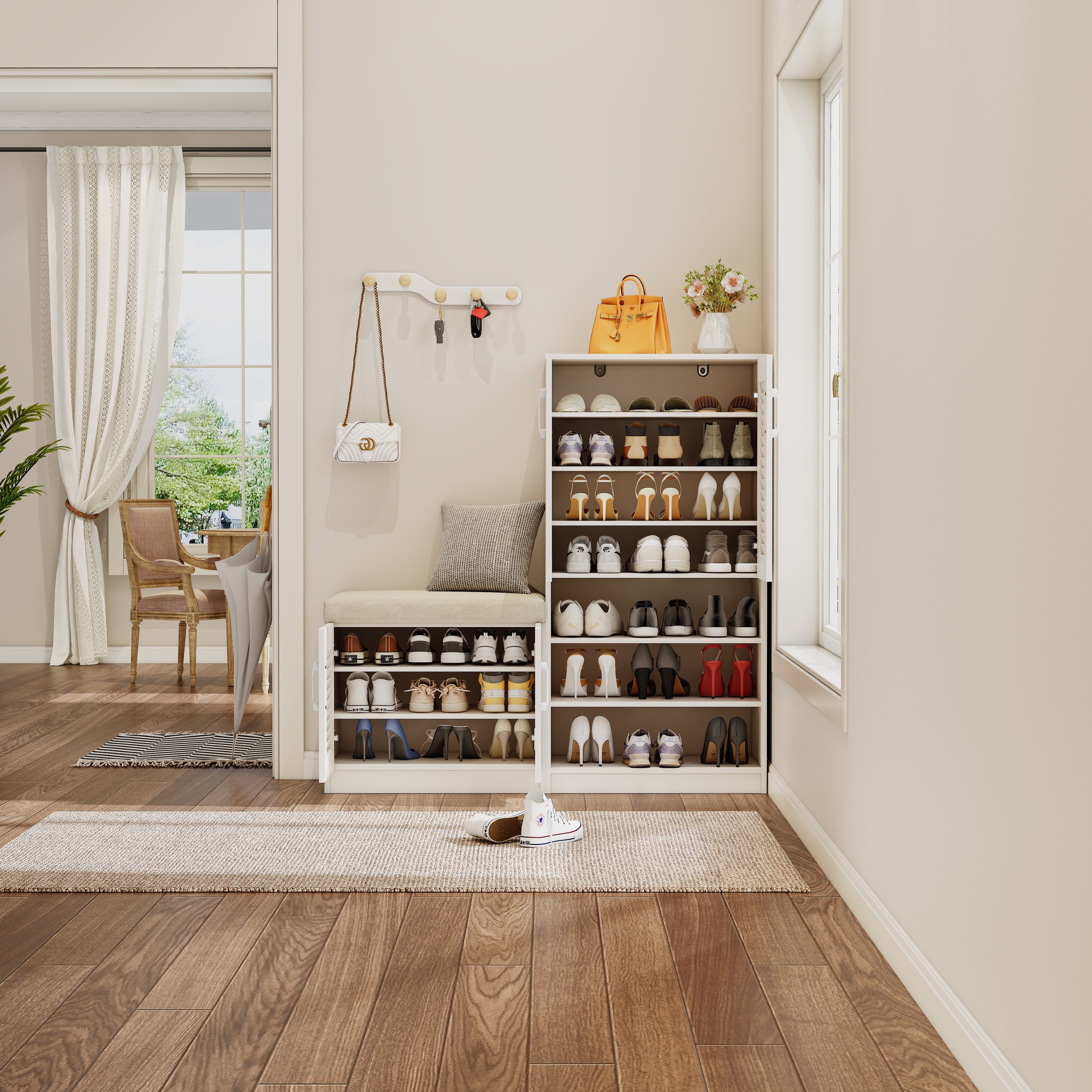 Multi functional Shoe Storage Cabinet with Bench and 7+3 Storage compartment Adjustable layer board
