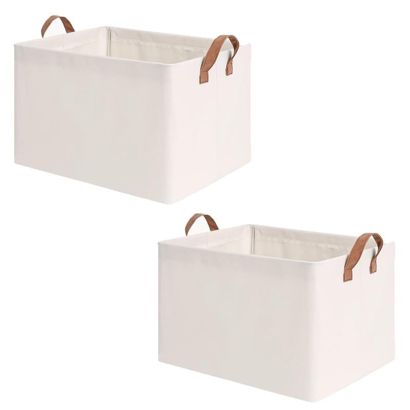 Large Fabric Storage Baskets- Metal Frame & Handles, 2-Pack, Off-White