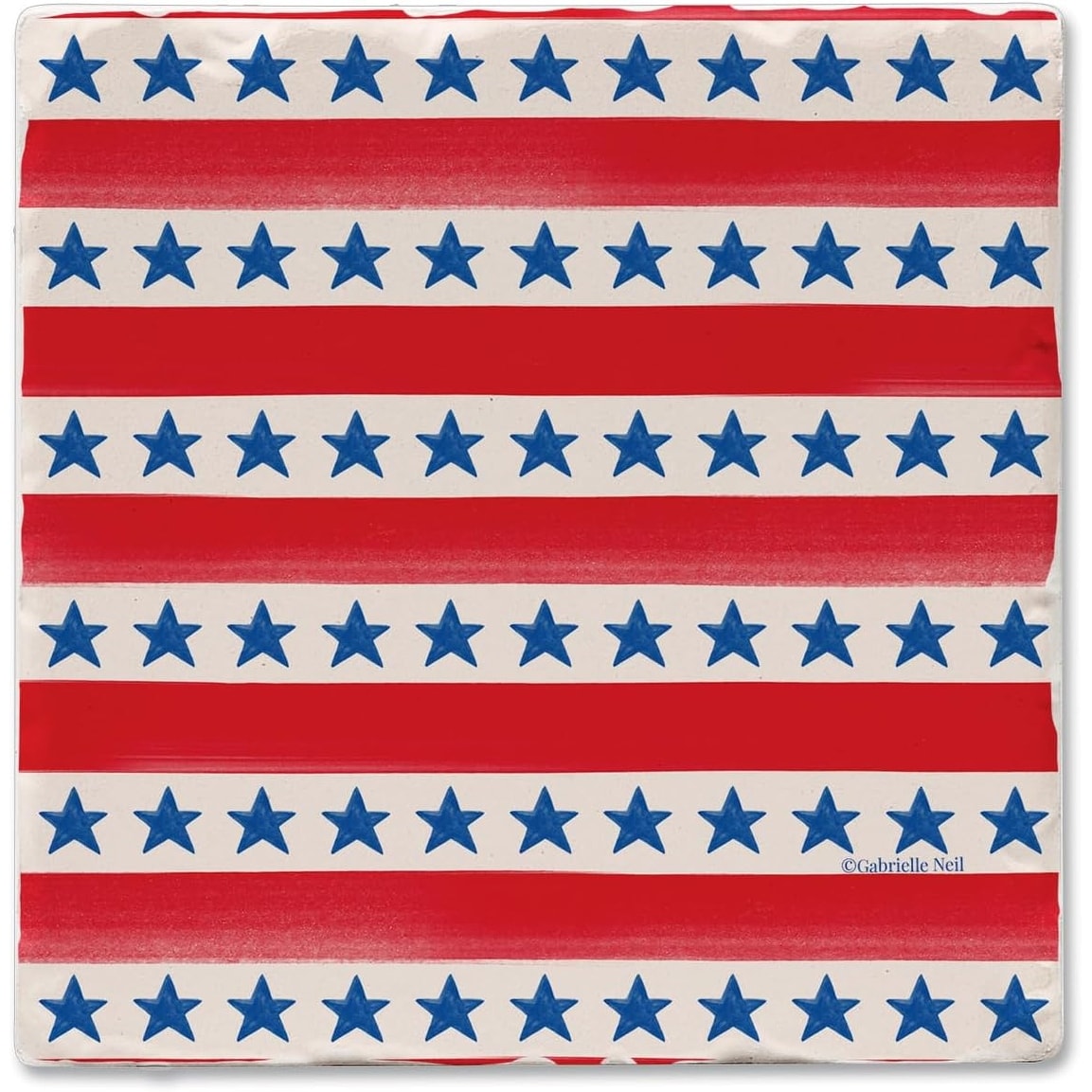 Star Stripe Patriotic Themed 4 Pack Tumbled Tile Coaster Manufactured in The USA Create Your Own Collection