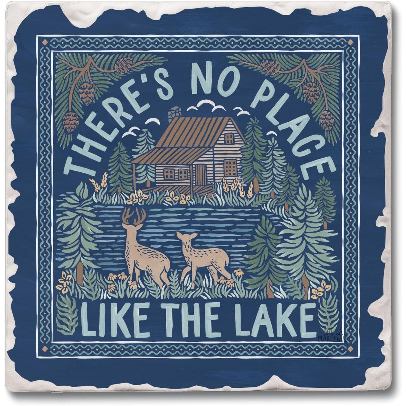 Lake Place 4 Pack Tumbled Tile Stone Coaster with Protective Cork Backing Manufactured in The USA 4" Square