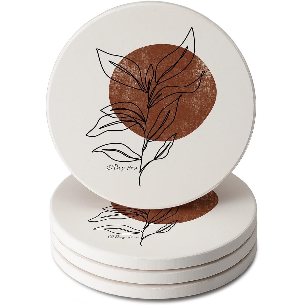 Mocha Stem 4 Pack Round Absorbent Stone Coasters with Protective Cork Backing Manufactured in The USA