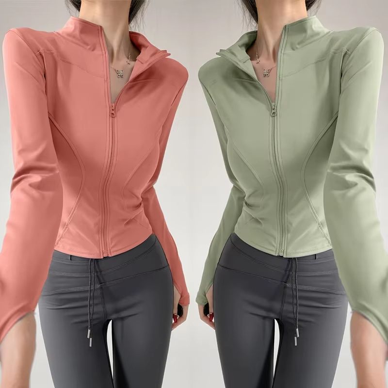 Sun Quick Drying Sports Coat Women Tight Yoga Jacket Long Sleeve Zipper Running Top l whale Blue
