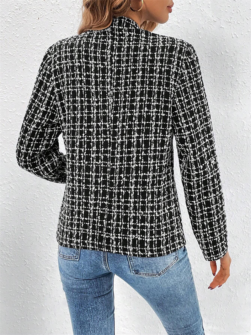 Women Fashion Casual Cardigan, Plaid Cropped Blazer Vintage Long Sleeve Chic Female Slim Outerwear Office Lady Suit Jack black xl