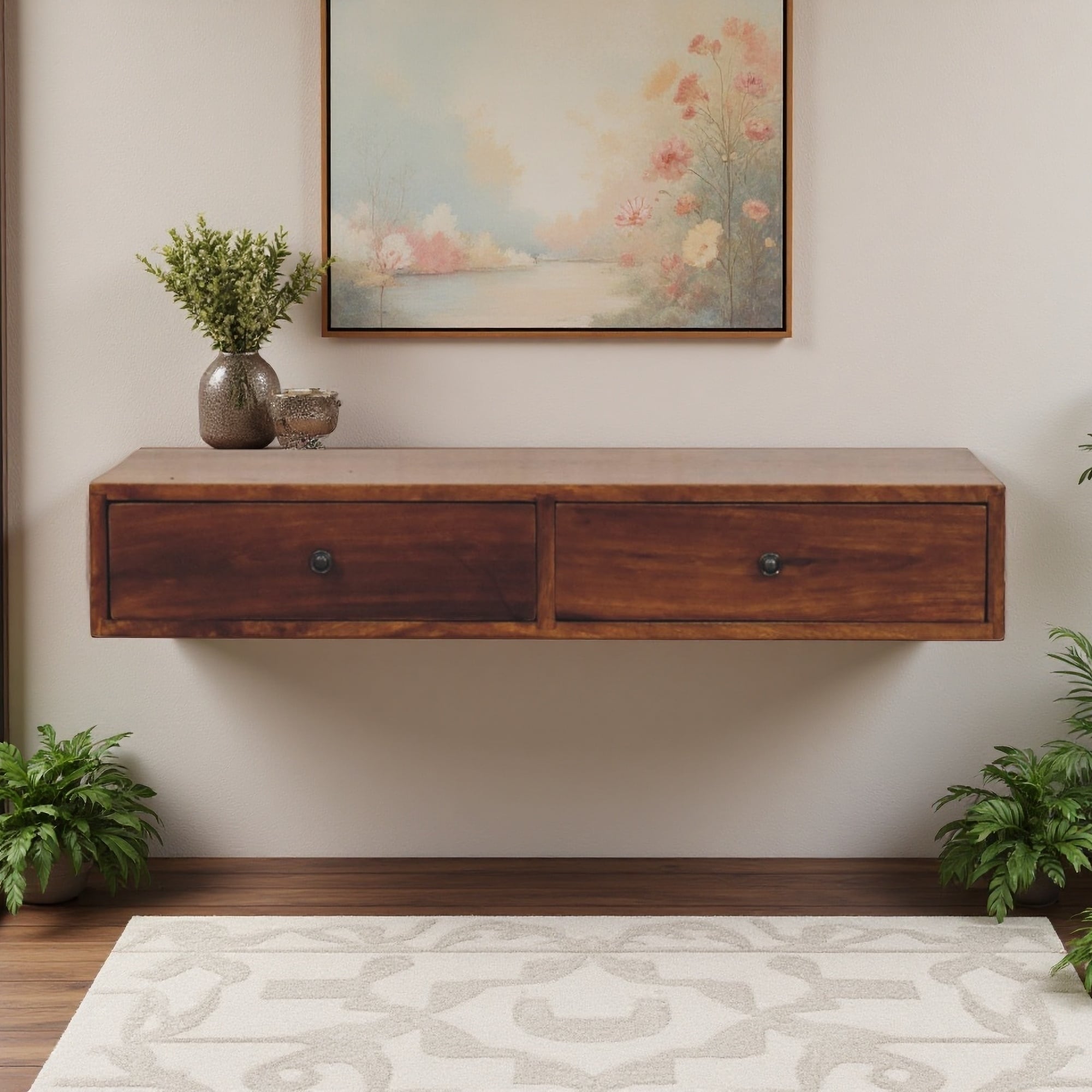 34.7" Wall-Mounted Mango Wood Console with 2 Drawers