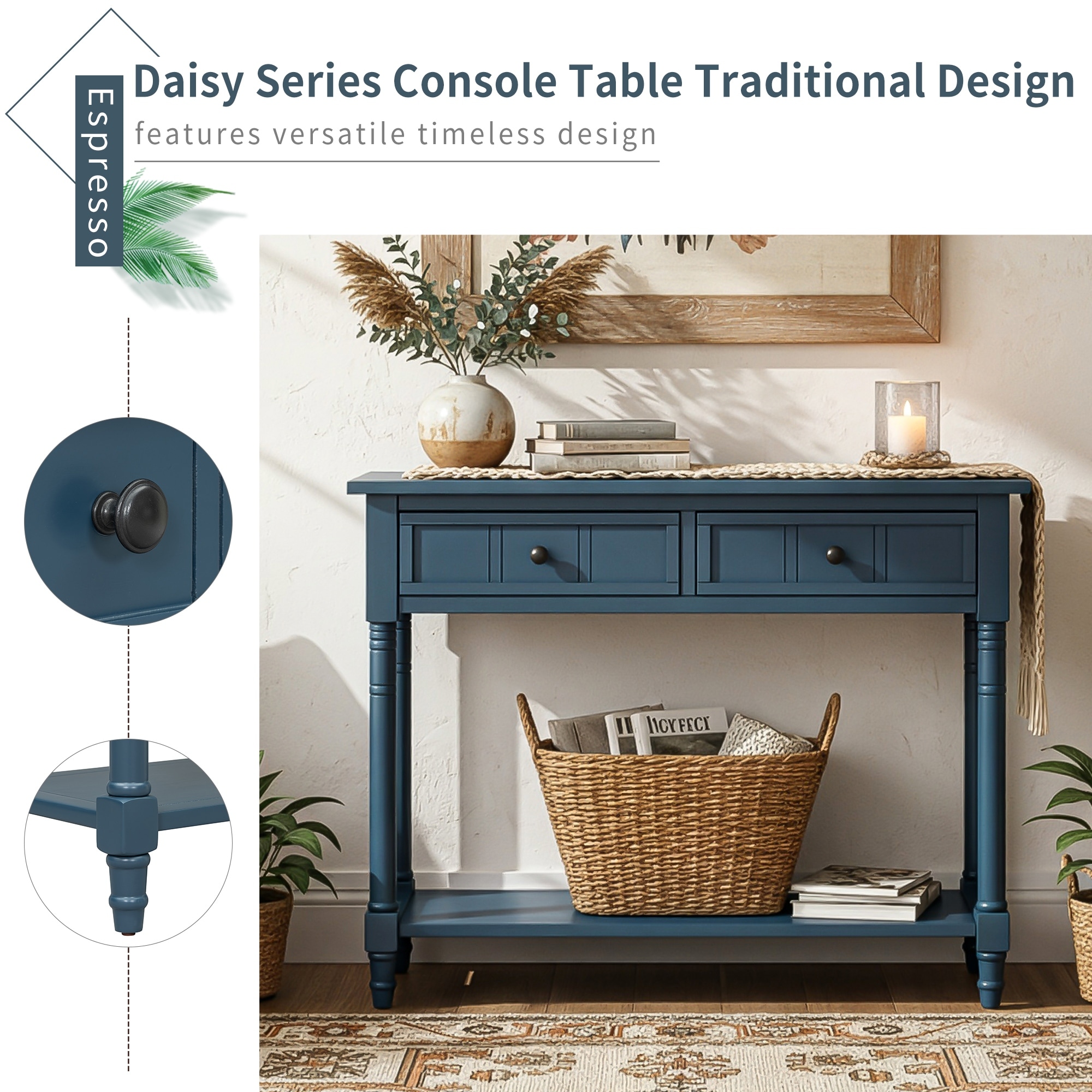 Now Furniture Solid Wood Classic Console Table - 46"